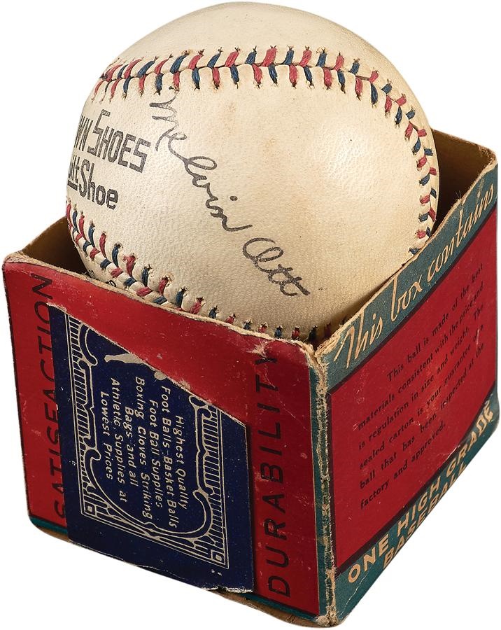Lot # 803: 1930s Mel Ott Buster Brown Shoes Baseball with Box