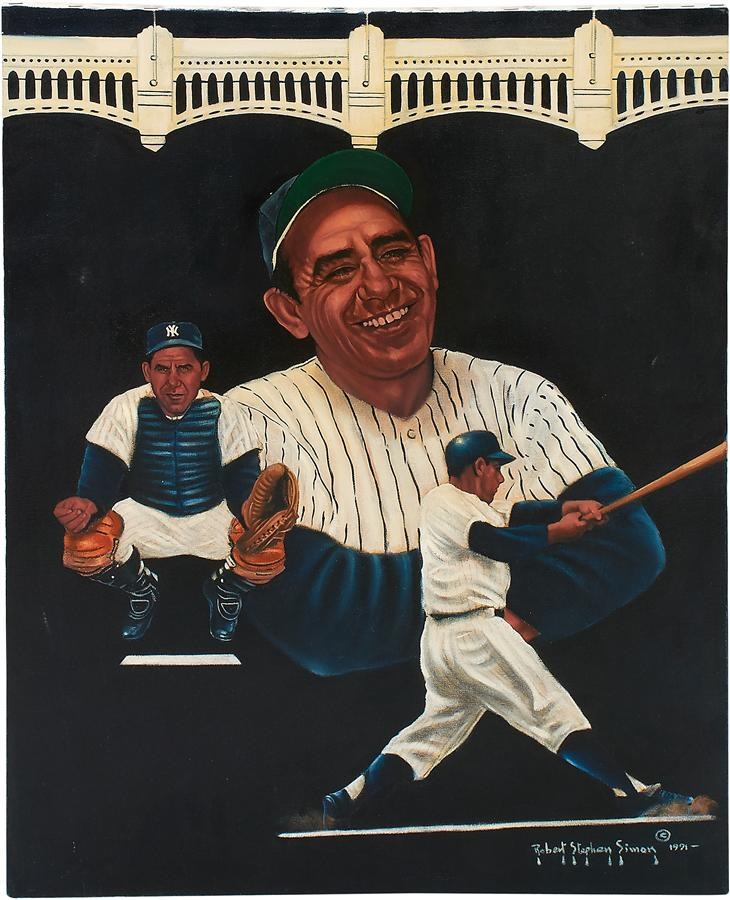 We lost one, true American original last summer as Hall of Fame catcher and one-of-a-kind personality Yogi Berra passed away. The winner of a record 13 World Series as a player and coach, Yogi flashes his pearly whites in this original oil painting on canvas that measures 24x30" and is signed "Robert Stephen Simon 1991" on the bottom right.