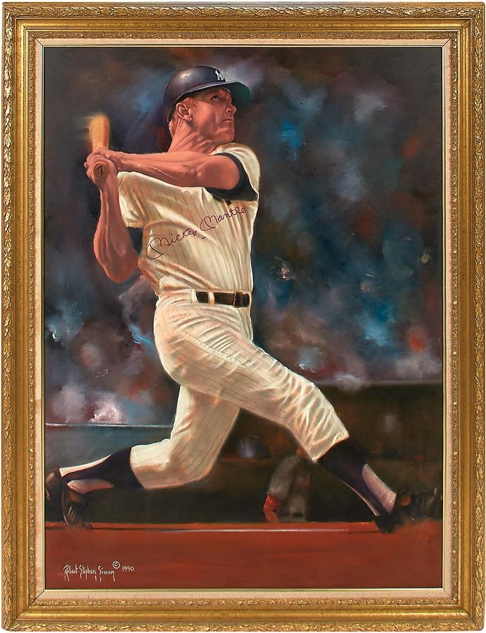 Lot # 959: Mickey Mantle Signed Oil Painting by Robert Stephen Simon