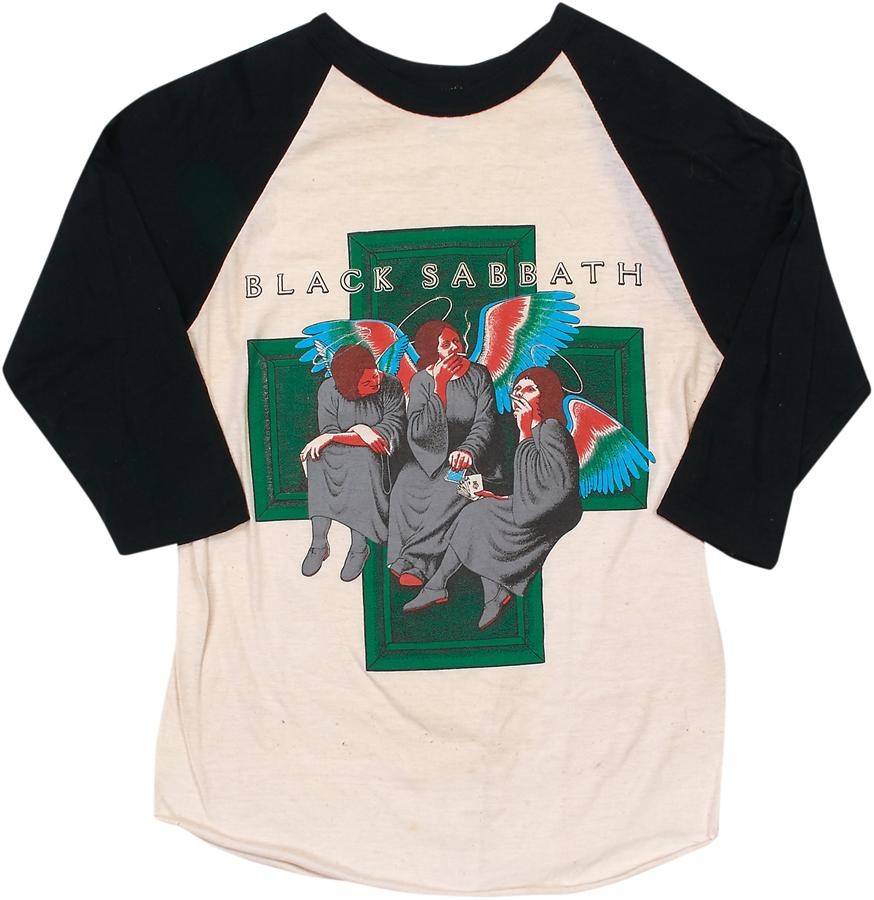 This is a great concert T-shirt from the tour entitled "Heaven and Hell" from 1980, backing up the band's first tour with new frontman Ronnie James Dio. Featuring great imagery of angels smoking and playing cards, per the album's cover art. Made by Harvey Sports, it is a size medium and is in Excellent condition.