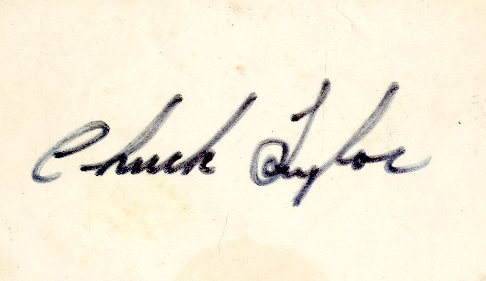 This guy basically invented the basketball sneaker for Converse and he basically died on the day he retired. Chuck Taylor changed the design of the shoe to provide enhanced flexibility and support and added the patch to protect the ankle, which became the most famous athletic shoe in the history of pop culture until Air Jordans. The All-Star star logo was then immediately included on the patch. By 1932 Chuck Taylor's name was added to the patch, and the shoe became the Chuck Taylor All-Stars. This signed 3x5" card is in felt tip, with expansive lettering, rating an 8/10.
