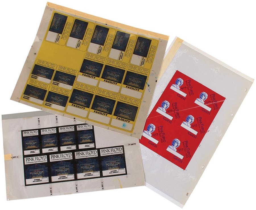 Lot # 1338: Pink Floyd Uncut Sheets & Original Art for Backstage Passes (3)