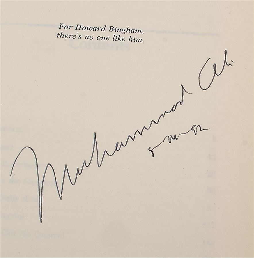 A great first edition of "Muhammad Ali His Life and Times" with an extremely large autograph dated 8-24-92 on the title page is the prize in this offering. The signature is 5" long, and the book and dust jacket are in Excellent or better condition.