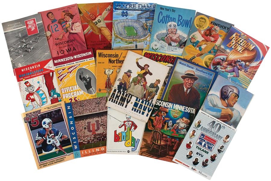 If you're a fan of what longtime college football historian Ivan Kaye referred to as "good clean violence," you'll flip for this collection of 44 programs and 25 tickets/stubs. The books range from 1941-2009 and include: Army vs. Navy (6), Notre Dame, Wisconsin, Ohio State, 1956 Harvard vs. Yale, Stanford, Syracuse, USC, Michigan and '52 Cotton Bowl. The 25 tickets/stubs originate from 1940-2009 and include: Army vs. Navy (10), Stanford/Cal, 1941 Rose Bowl (2), 1944 Rose Bowl (2), 1952 Cotton Bowl, 1976 Peach Bowl and Hall of Fame Bowl (4).