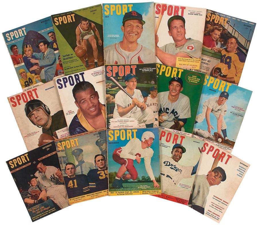 The first American publication to capture athletic endeavors in color, Sport magazine launched in September of 1946 with Joe DiMaggio gracing the inaugural cover. Here's a massive compilation of the monthly that predated Sports Illustrated by a solid eight years, including a copy of that first edition and ranging from 1946 to 1989 - 11 years prior to the magazine's last issue. There are 389 issues included here, and their conditions average EX.