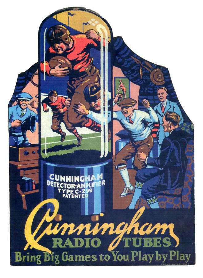 Colors on this cardboard standee are so rich, vibrant and bright, it is amazing, as it looks more like a silkscreen or a piece of original art rather than merely printed. Dated 1925 and the first we have seen, this is an interesting radio crossover, which makes this even more desirable. The brilliant diecut gives appearance of a triptych, and the easel back is in unused condition, the piece measures 12.75x9".