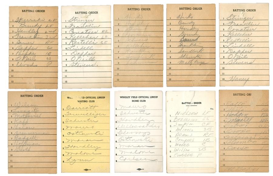 Lot # 459: 1940s-50s Game Used Lineup Cards with Chuck Dressen Autograph (10)