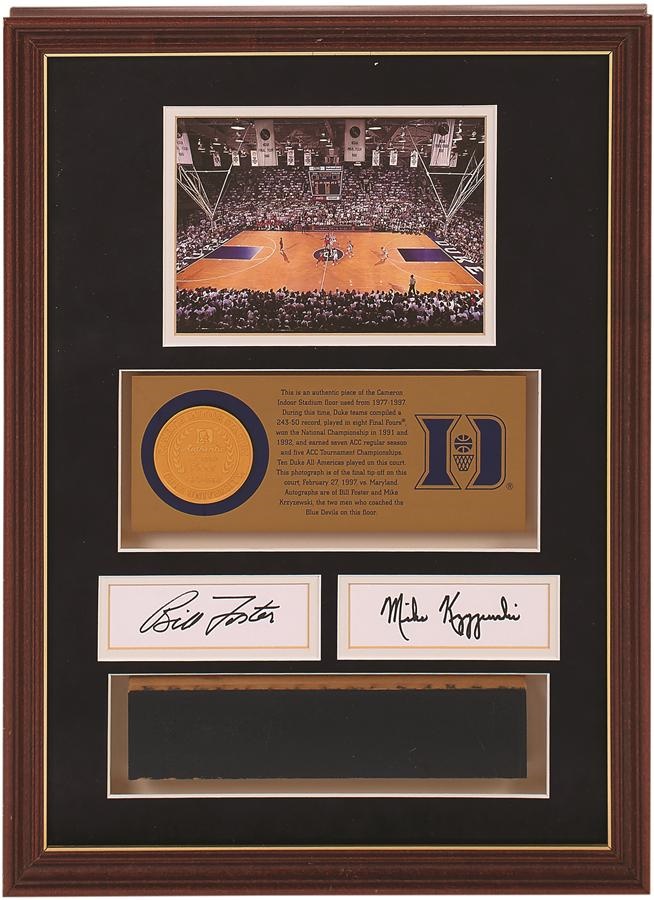 Lot # 970: Mike Krzyzewski & Bill Foster Signed Duke Game Used Cameron Floor Display