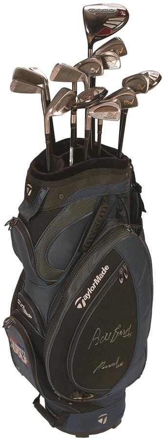 Hall of Famer Bill Russell cut an imposing figure on the court at 6'9", and was practically gigantic on the links, where he enjoyed many hours of recreational time. This standard set of 14 golf clubs housed in a canvas Taylor Made bag came directly from one of the greatest to ever play the game of basketball. The bag is signed "Bill Russell, Personal Use" in 7/10 silver Sharpie. Comes with hand-signed LOA from Bill Russell, himself.