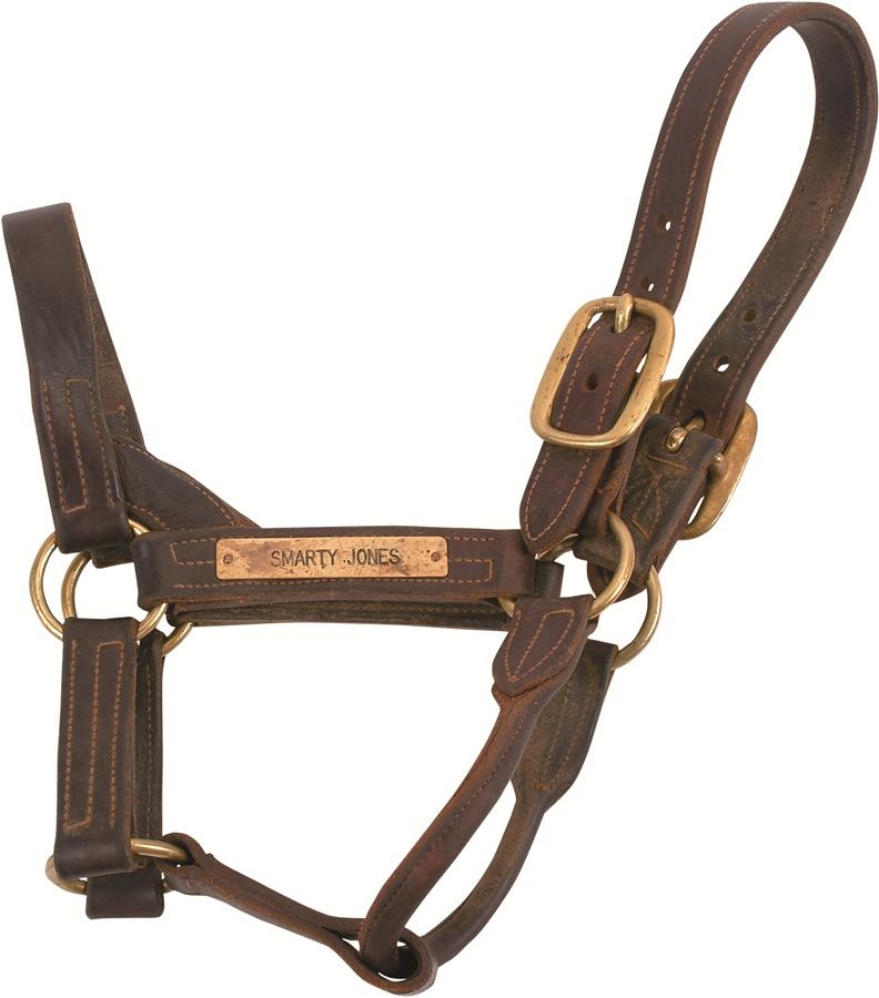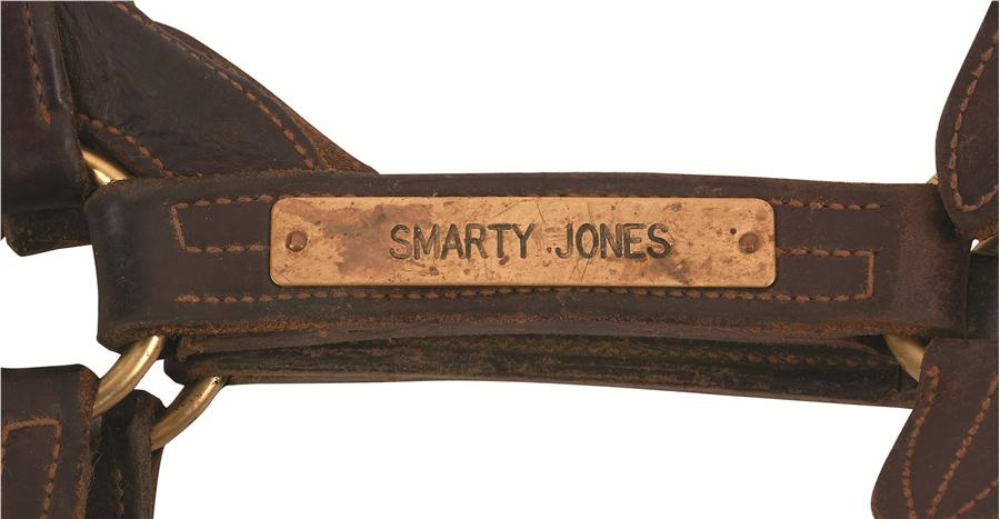 This authentic worn halter originates from the great 2004 Kentucky Derby and Preakness winner Smarty Jones. Obtained from his time at Northview Stallions Farm in Pennsylvania, it comes with Letter of Authenticity. Smarty Jones is currently standing stud at the historic Calumet Farm in Lexington, Kentucky. One small step from the Triple Crown, this spectacular thoroughbred won the first two legs and finished second in the Belmont. A third-generation descendant of Mr. Prospector, included in his pedigree are Triple Crown winners Secretariat, Count Fleet, War Admiral, Gallant Fox and Omaha, plus such other Triple Crown race winners as Northern Dancer, Foolish Pleasure and Man O' War. A great remnant from quite a horse with a lineage to match.
