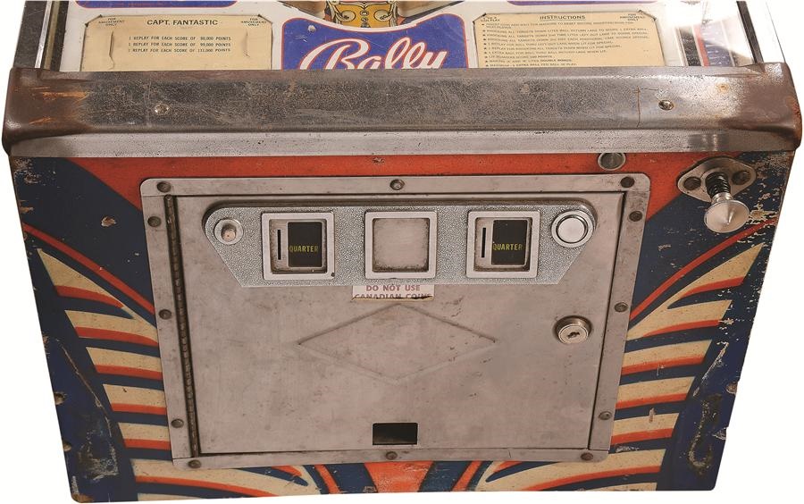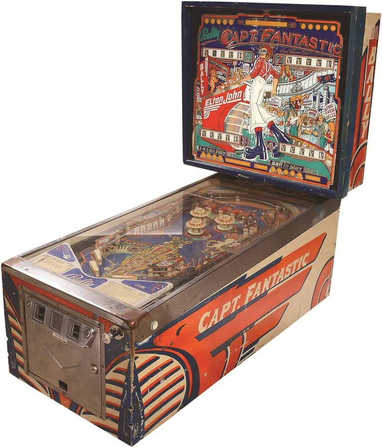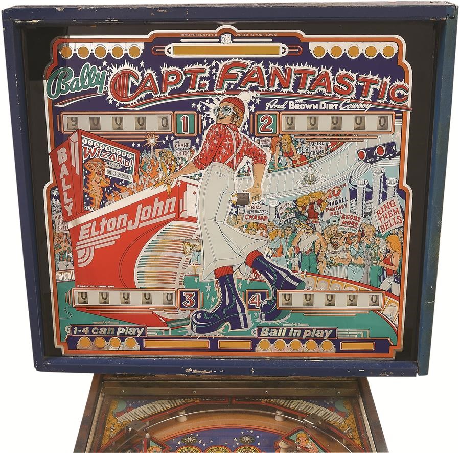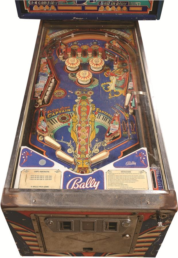 Interestingly, this was the very first pinball machine to be licensed. Although it is a tribute to the fine Elton John album Captain Fantastic, this is actually his character of the Pinball Wizard from the 1975 film Tommy (we suppose Bally could afford licensing from both Elton John AND The Who). The machine is not working, otherwise it’s about EX. The back glass paint is original and almost perfect. An extremely desirable game in the pinball field, it features four flippers, over 100,000 scoring, drop targets and double bonus. Ever since I was a young boy, I played that silver ball. Legs will come detached and freight shipping applied. Free pickups always available.