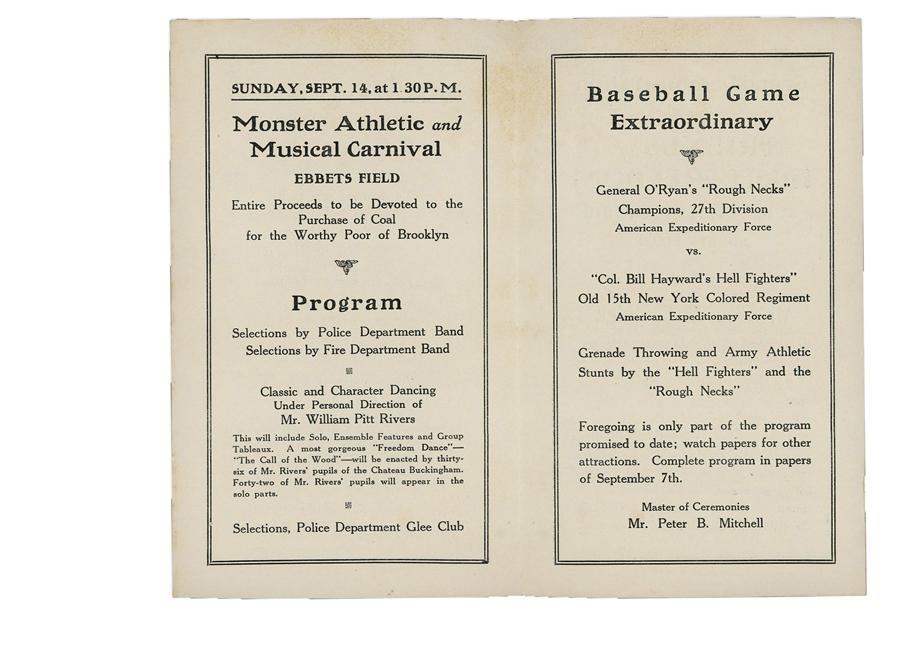 Lot # 450: 1919 Brooklyn Dodgers Ebbets Field Schedule with Irish Republican Army Political Event (ex-Sal LaRocca Collection)