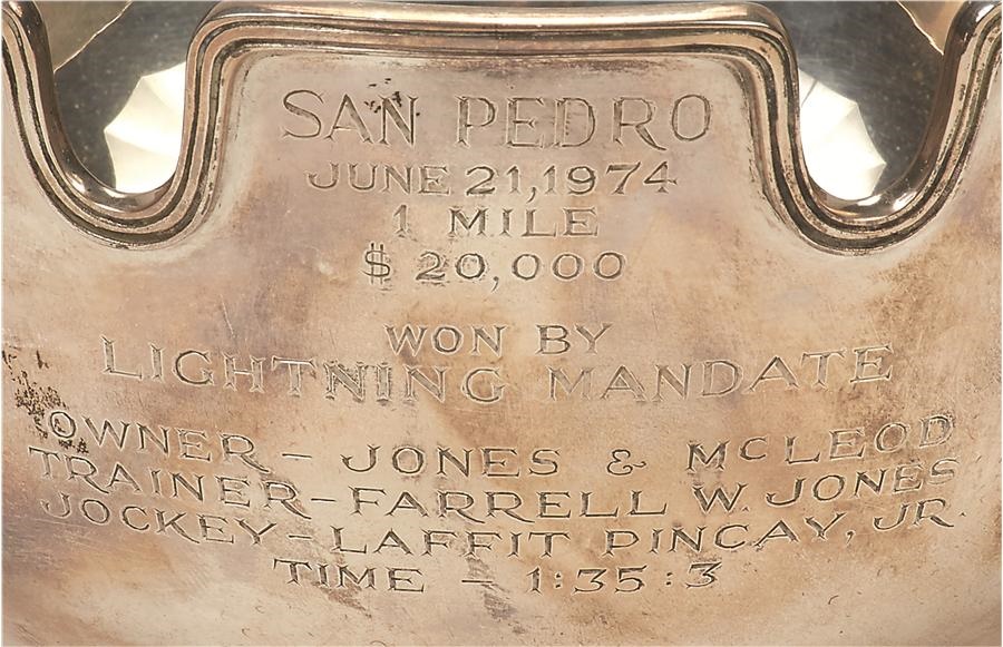 Lot # 813: "Lightning Mandate" 1974 San Pedro Horse Racing Silver Trophy by Tiffany - Laffit Pincay Jr.