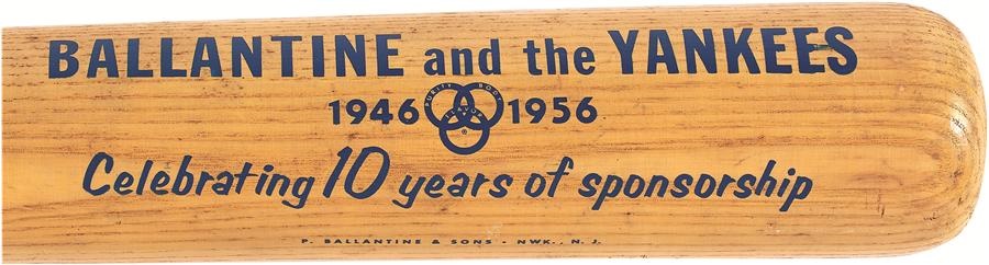 Lot # 482: 1956 Mickey Mantle Brand NY Yankees Ballantine Beer 10-Year Promotional Bat - First We've Seen