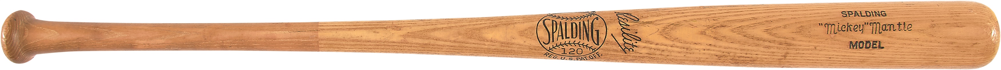 This bat is a blast from the past - a Ballantine blast. We have never seen one of this kind before, a super rare giveaway to Ballantine Beer distributors to celebrate their 10-year collaboration with the Yankees. The Spalding Mickey Mantle endorsed bat is even in the length The Mick preferred, 35 inches. It weighs just 29 ounces, the wording on the barrel is bright blue and crystal clear, stating, "Ballantine and the Yankees, Celebrating 10 Years of Sponsorship," with the years 1946 and 1956 on either side of Ballantine's interlocking circles logo. Just a beautiful, clean specimen.