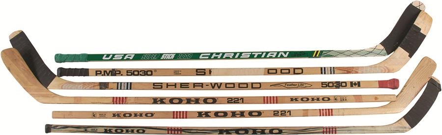 Lot # 977: "Miracle On Ice" Team Member Game Used Sticks (6)