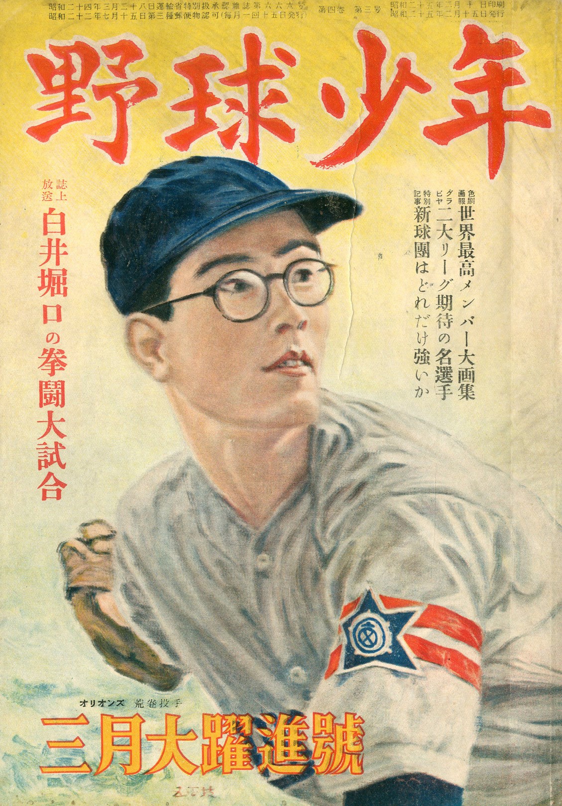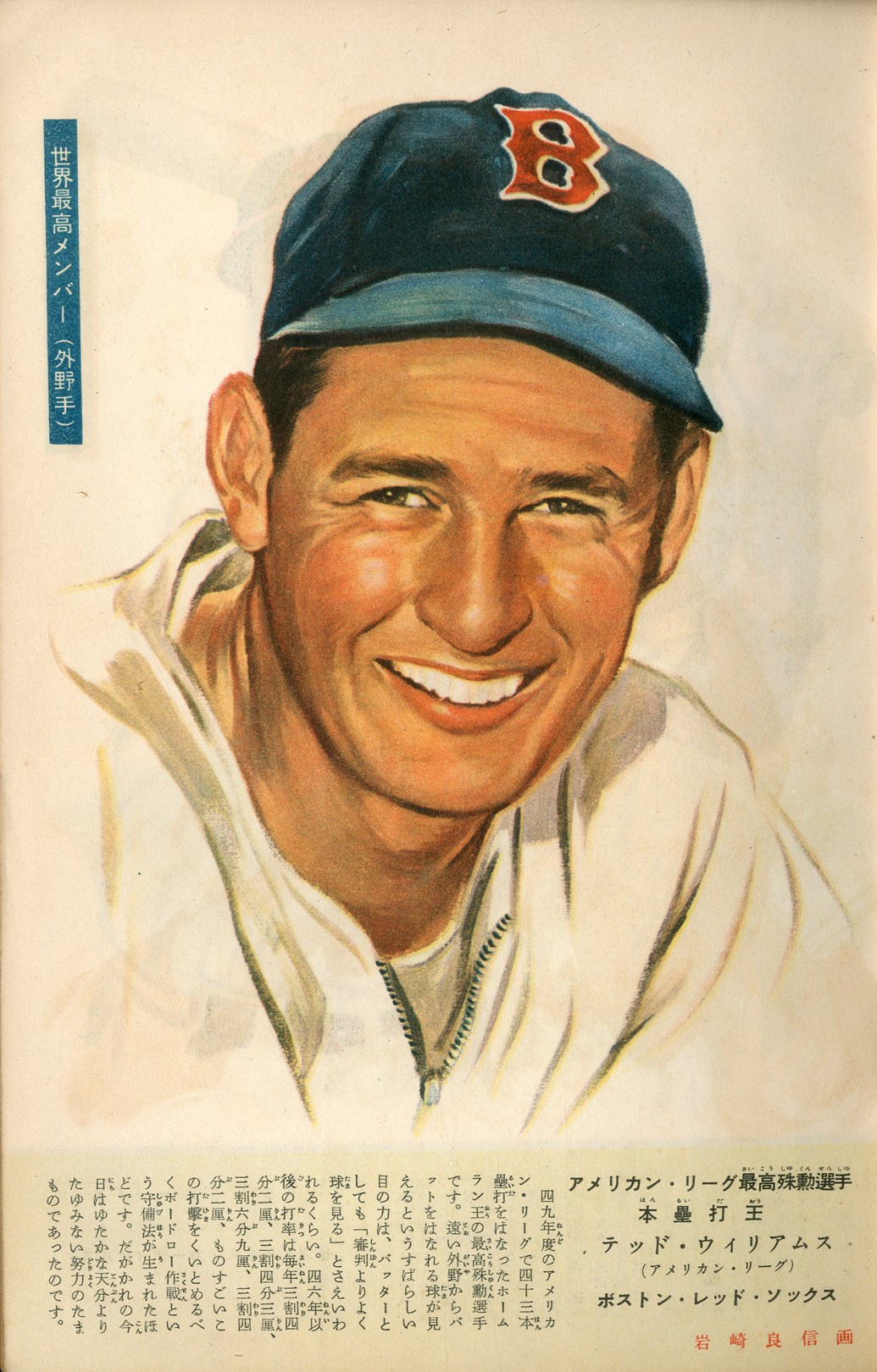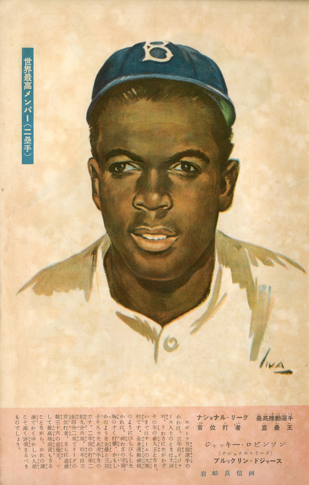 Baseball has always been big in Japan, and American baseball has always fascinated the natives as well. On the pages of this colorful publication are color portraits of stars such as Roy Campanella, Phil Rizzuto, Stan Musial, Ted Williams, George Kell, Ralph Kiner and Jackie Robinson. There is a total of nine portraits on heavy stock, with incredible graphics throughout the book.