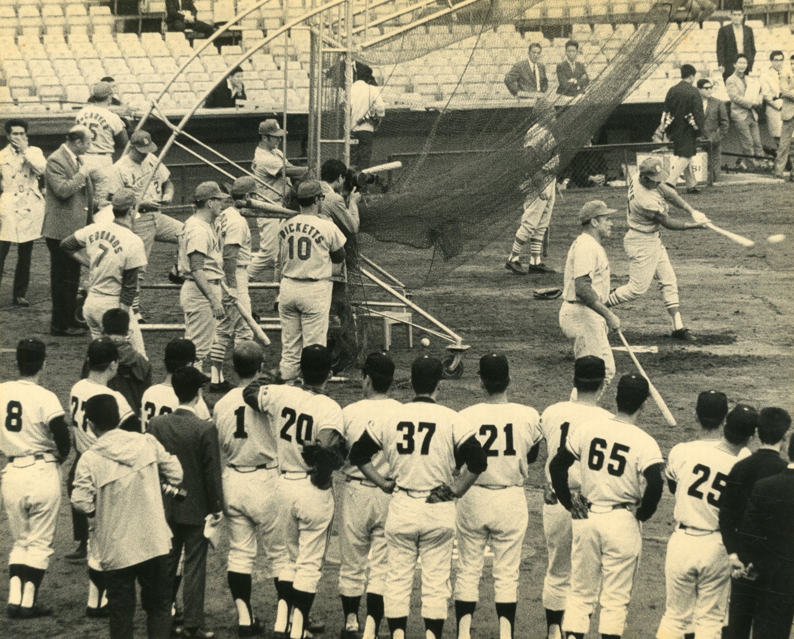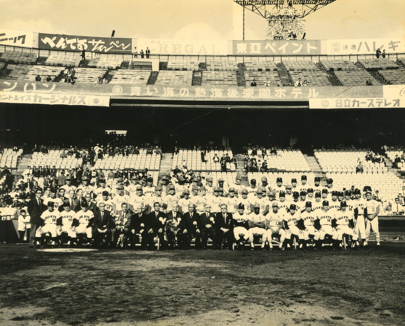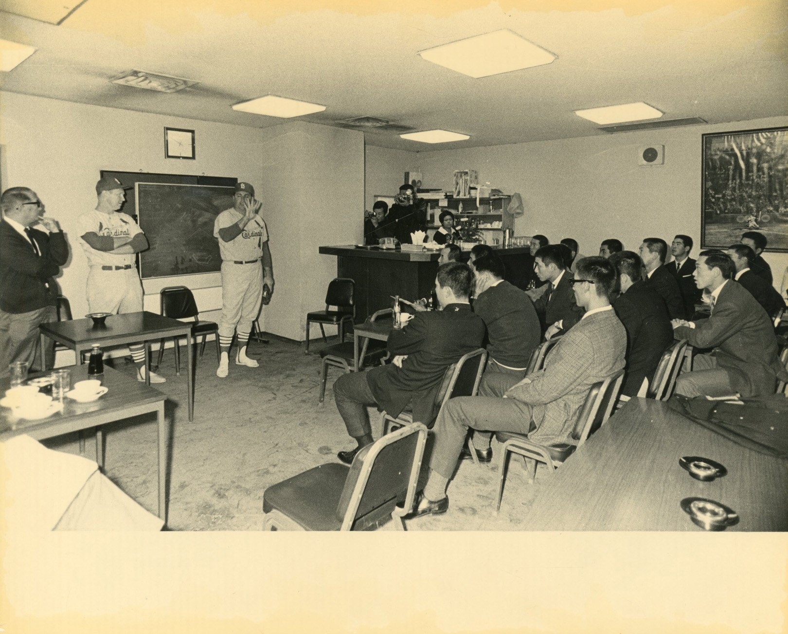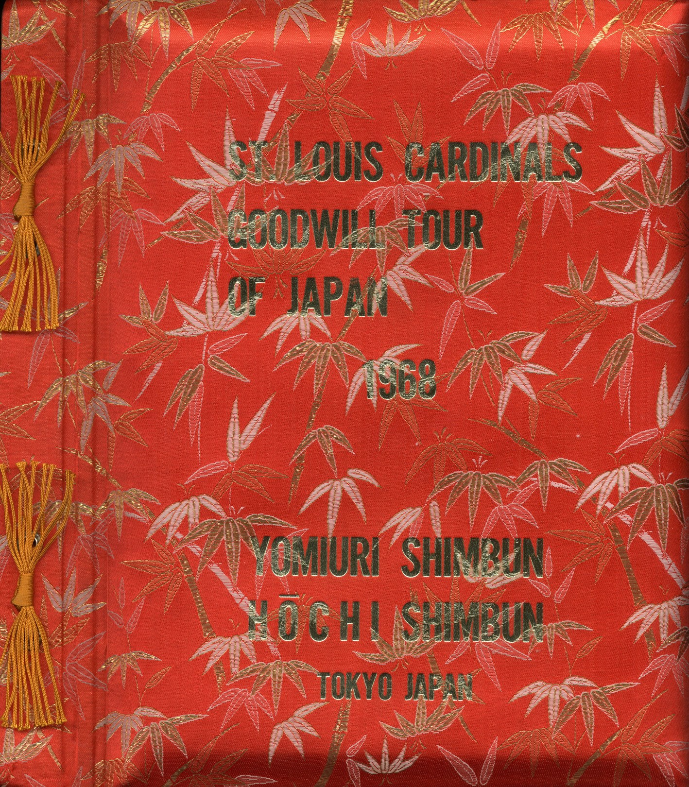 One of the earliest meetings between international sluggers with Stan Musial serving as ambassador for the St. Louis Cardinals' and the United States versus future home run king Sadaharu Oh of the Tokyo (Yomiuri) Giants representing Japan and the Orient. Handcrafted silk bound photo album blows away anything created in the West. Thirty magnificent photographs document this legendary tour of the East. Type I images show Stan Musial in a variety of places and poses. In highest grade NM-MT condition.