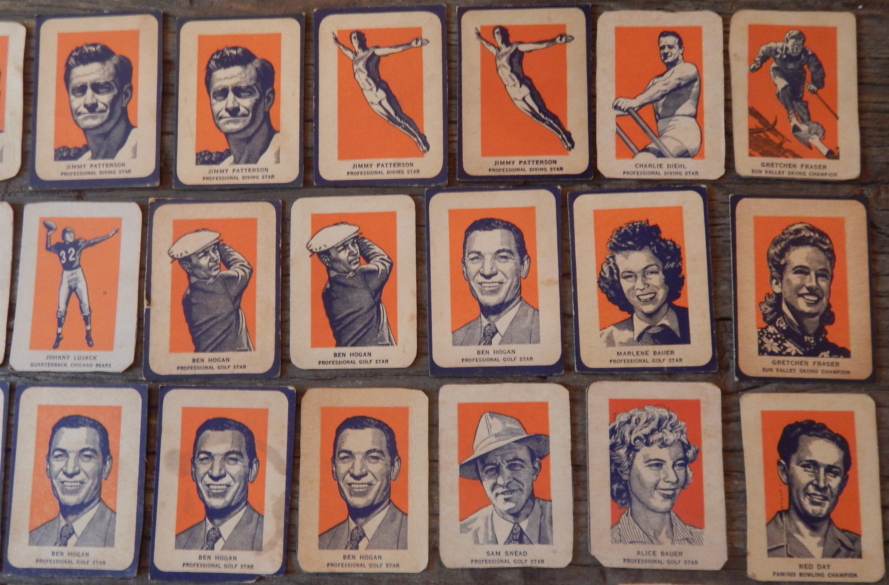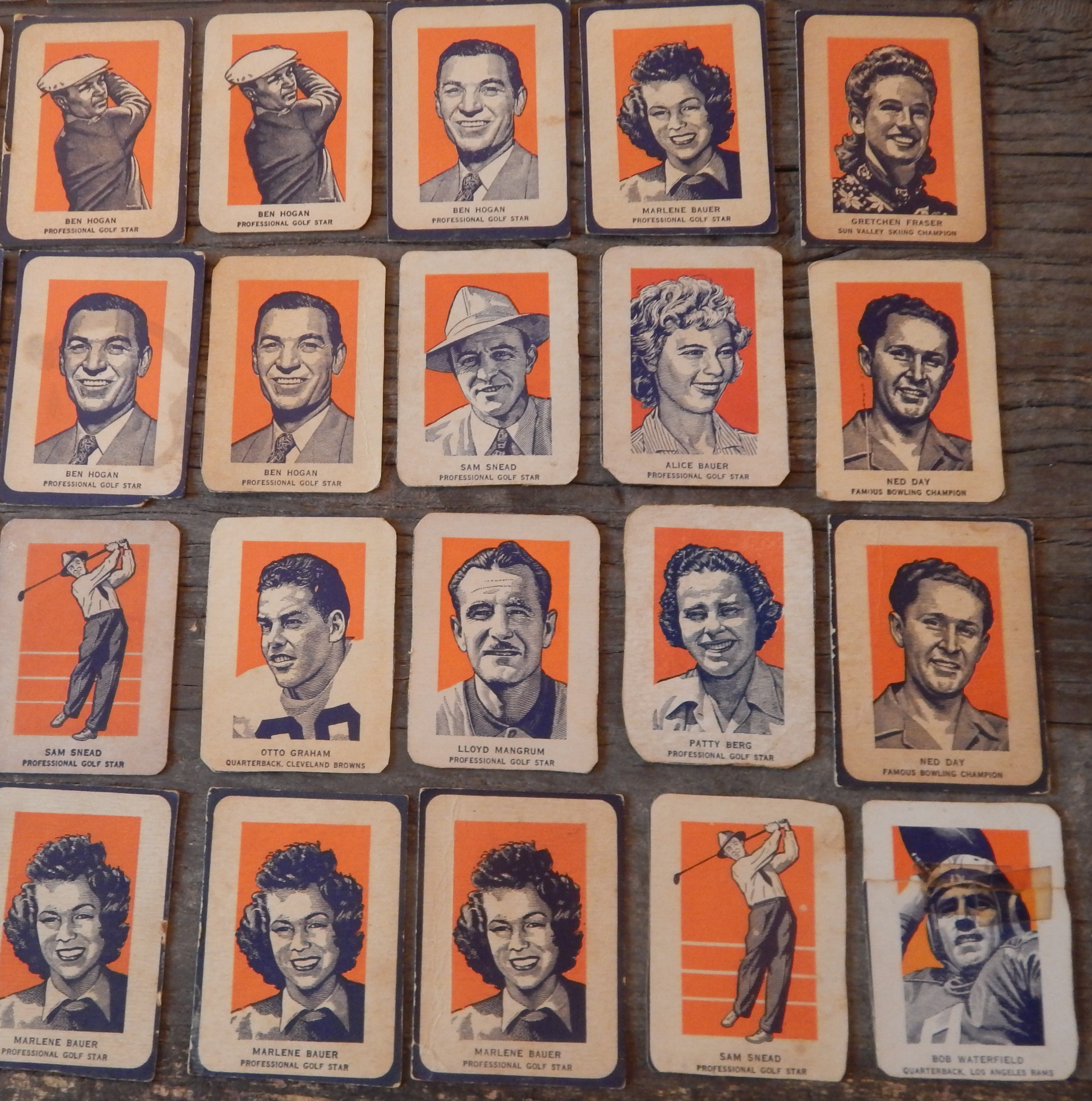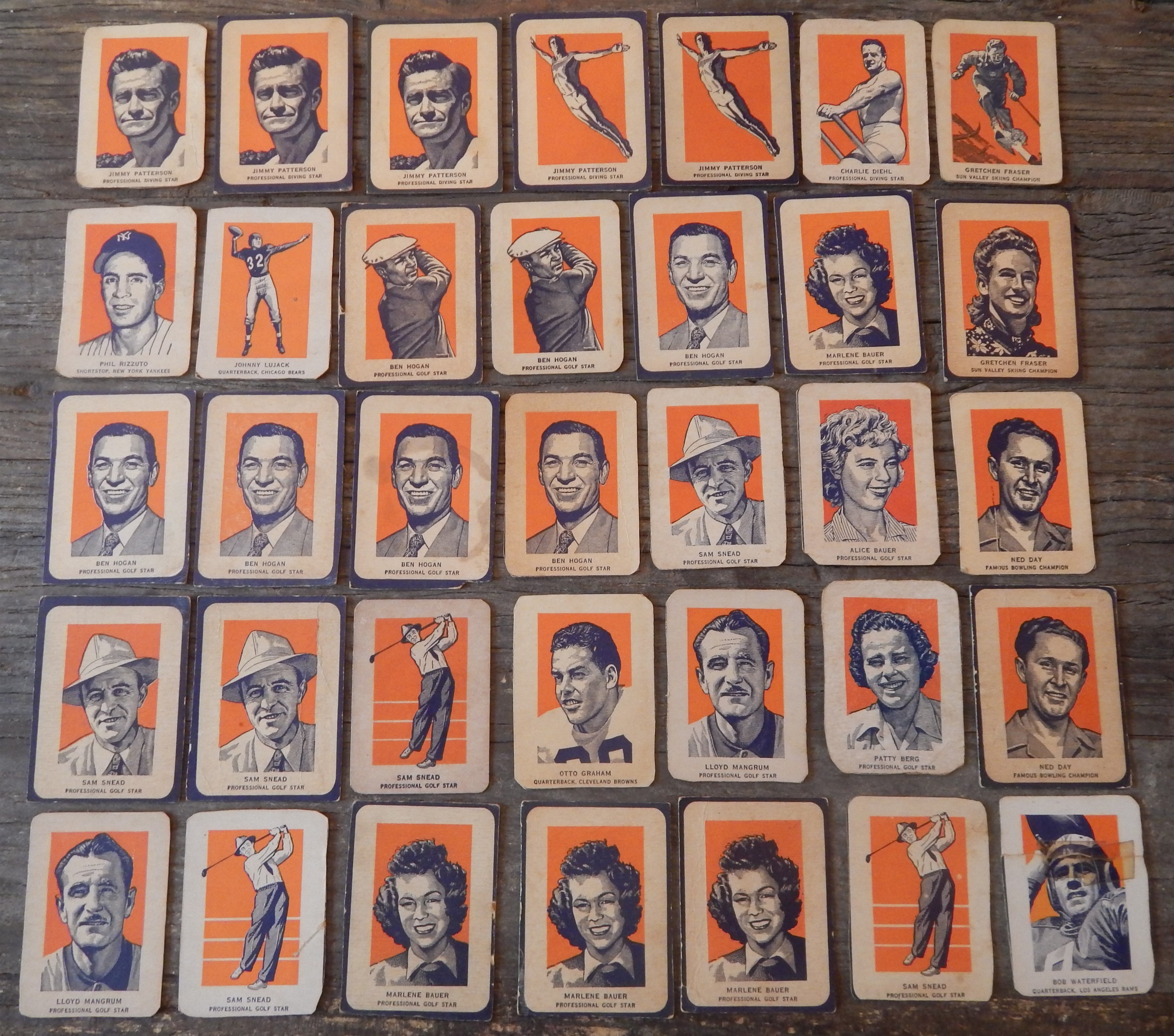 Many stars including, Rizzuto, Lujack, Hogan, Snead etc. Many with extended borders. Condition as shown.