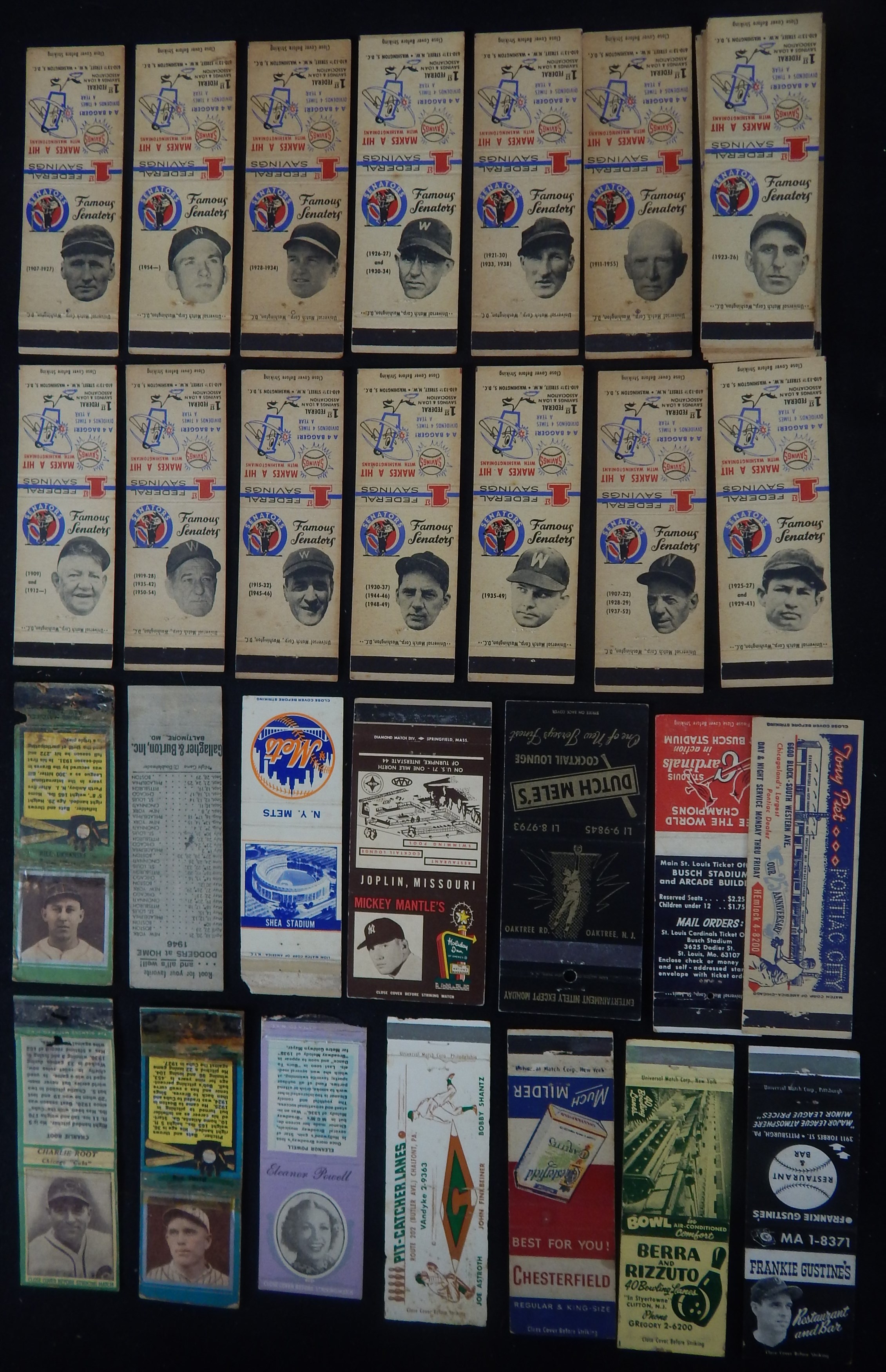 Some great stuff here; famous senators complete set of 20 with Walter Johnson, 1954 Giants schedule, rare Berra and Rizzuto bowling alley, Mickey Mantle Holiday Inn, 1946 Dodgers Schedule. And more, overall EX.