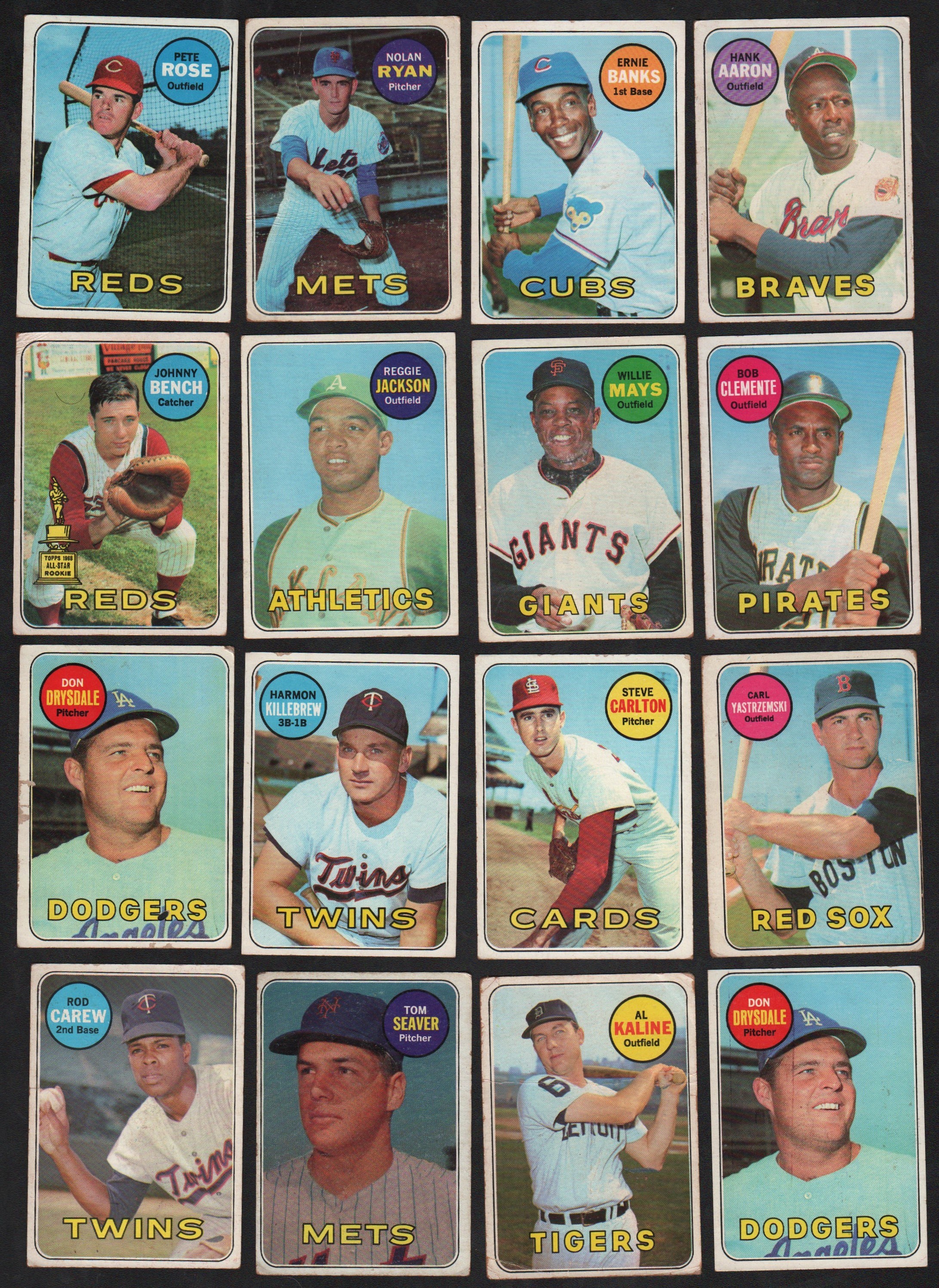 Partial set plus extras from the last set of the 60's. Includes most stars (No Mantle), with #50 Clemente (VG/EX), 130 Rose (VG/EX), 200 Mays (VG), 260 Jackson (EX), 533 Ryan (GD).