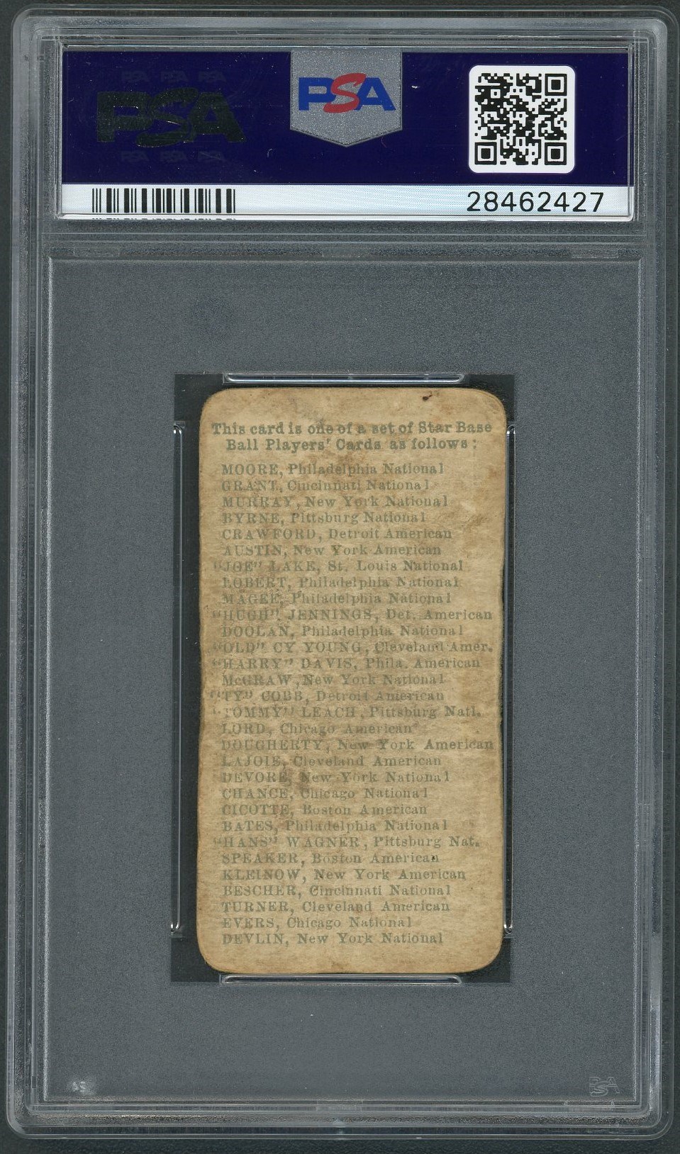 Authenticated by PSA AUTHENTIC - Altered. Extremely rare card issued by the George Close Candy Company of Cambridge, MA. Each of the 30 cards in this rare set were issued with different colors, and with up to 11 different back stamps. This is the orange background with no back stamp of Frank Chance, Chicago Cubs HOFer. Appears to have some type of trimming along the left edge.