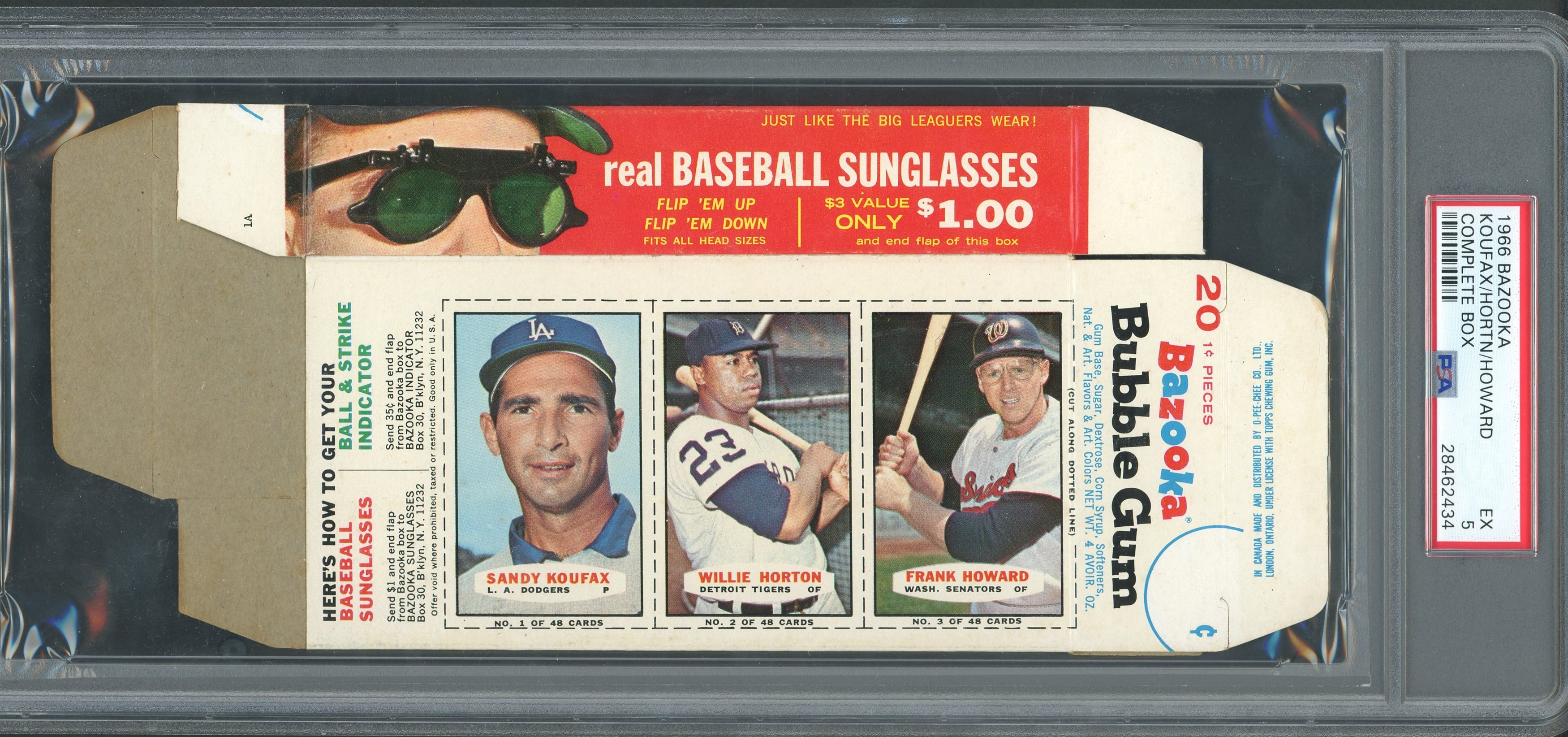 Graded by PSA EX 5. 1966 Bazooka full box featuring Sandy Koufax, Willie Horton and Frank Howard.