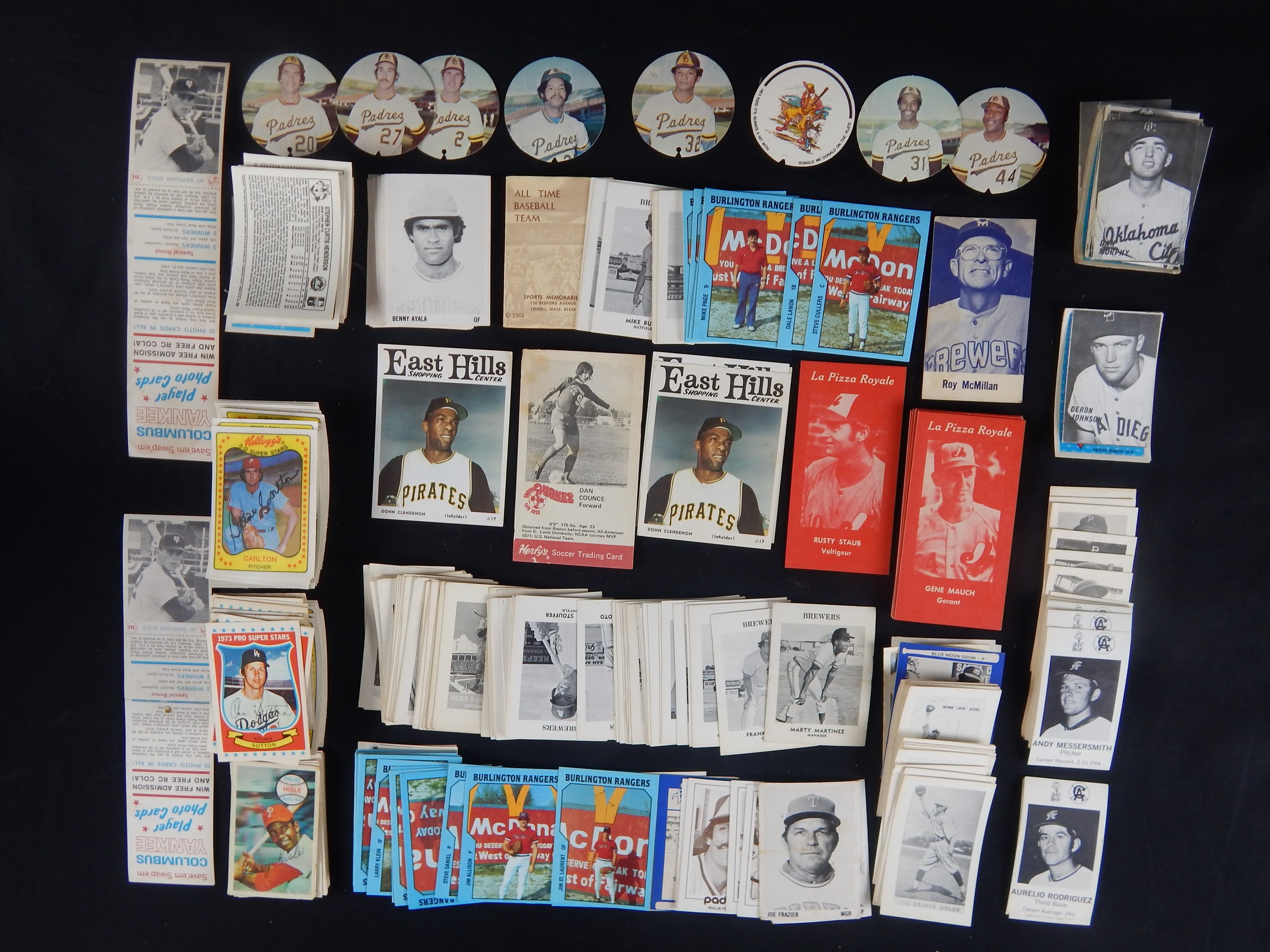 Eclectic grouping of mostly oddball stuff with some regionally issued minor league cards and partial sets. Also includes 52 Frank Nagy "business cards", Nagy was arguably the most famous card collector in the history of the hobby and created business cards with famous card images on the front and his personal info on the back. Also, contains about 100 Kellogg's cards and some 1966 East Hill Pirates cards.