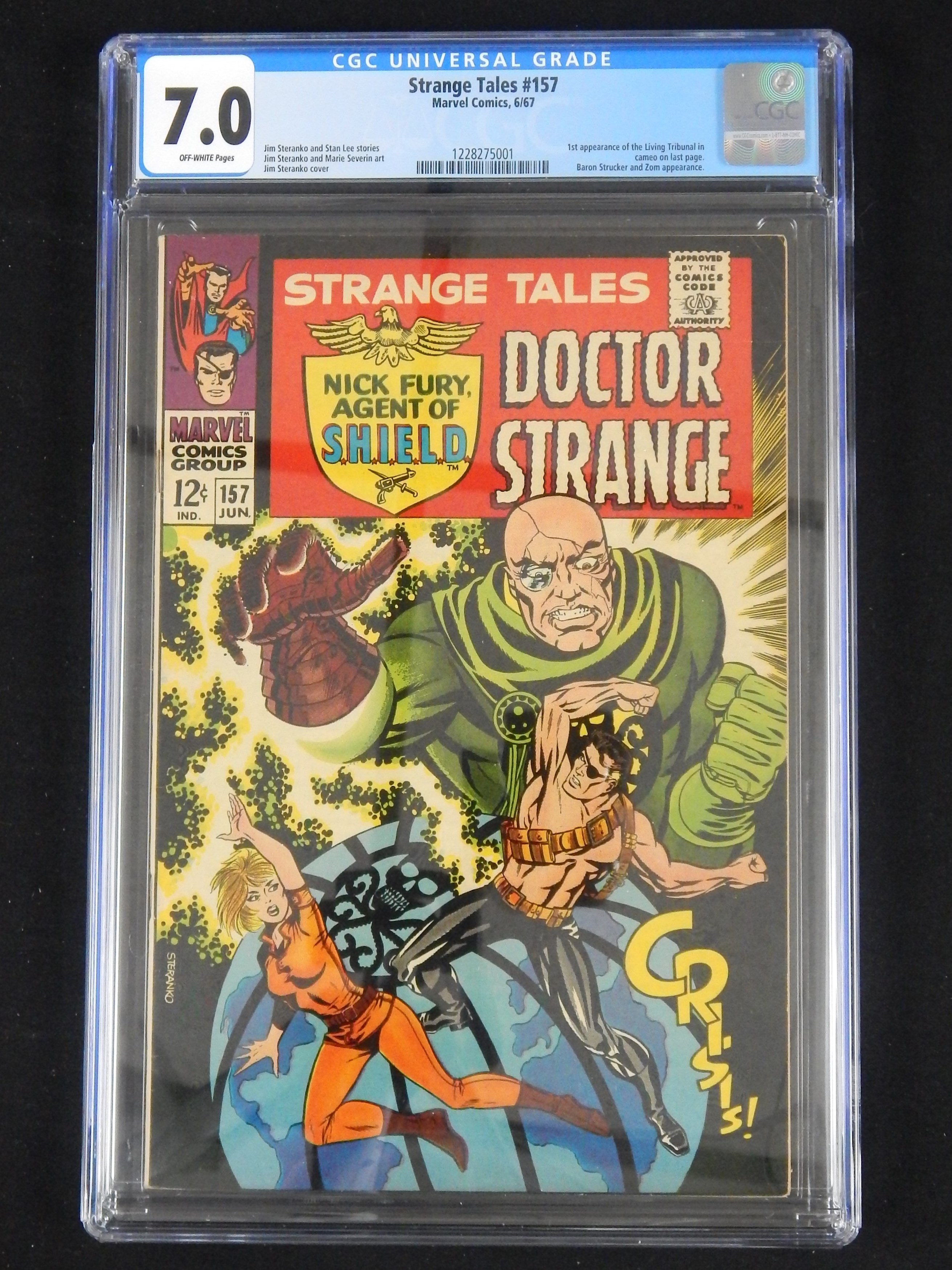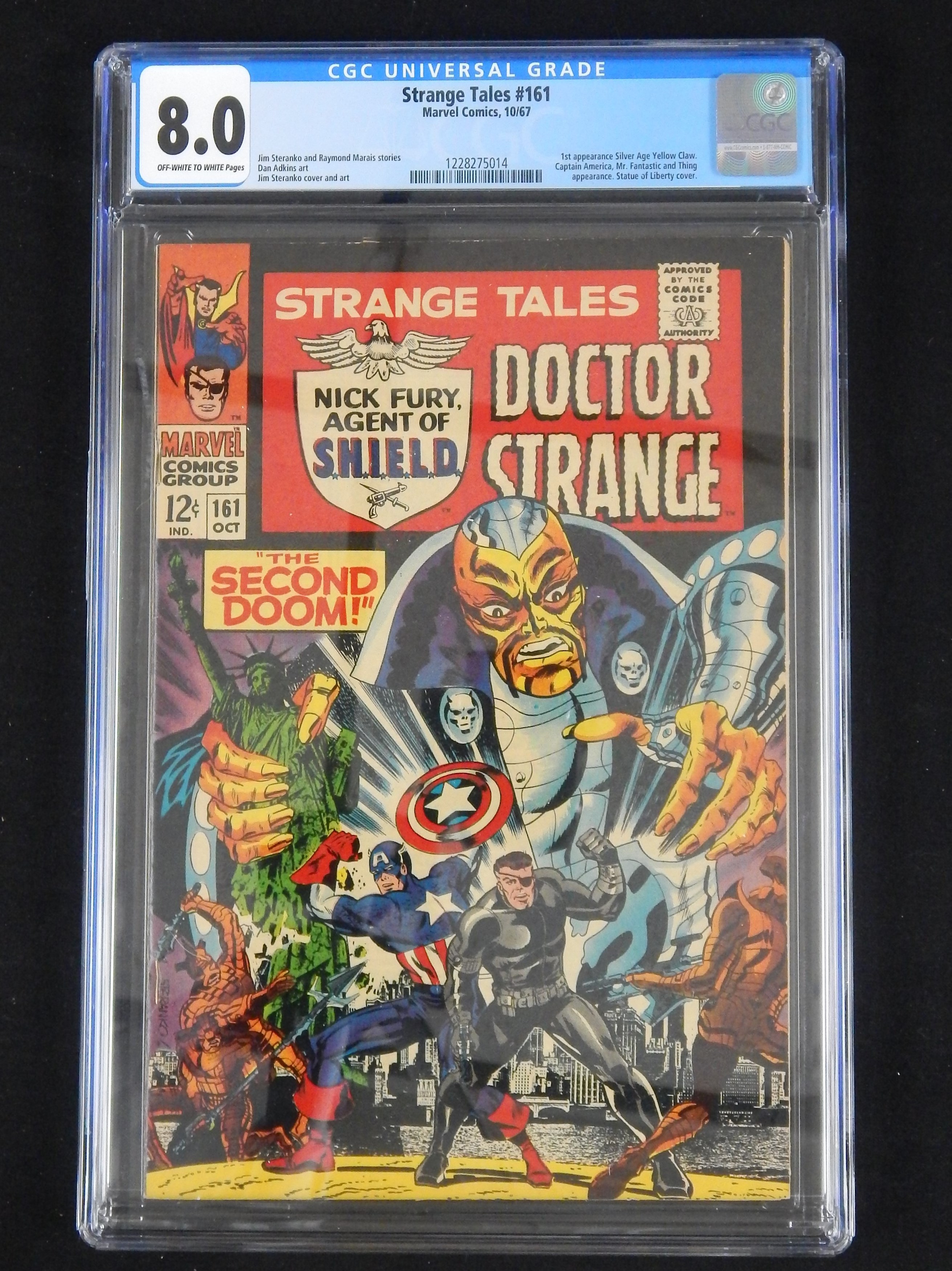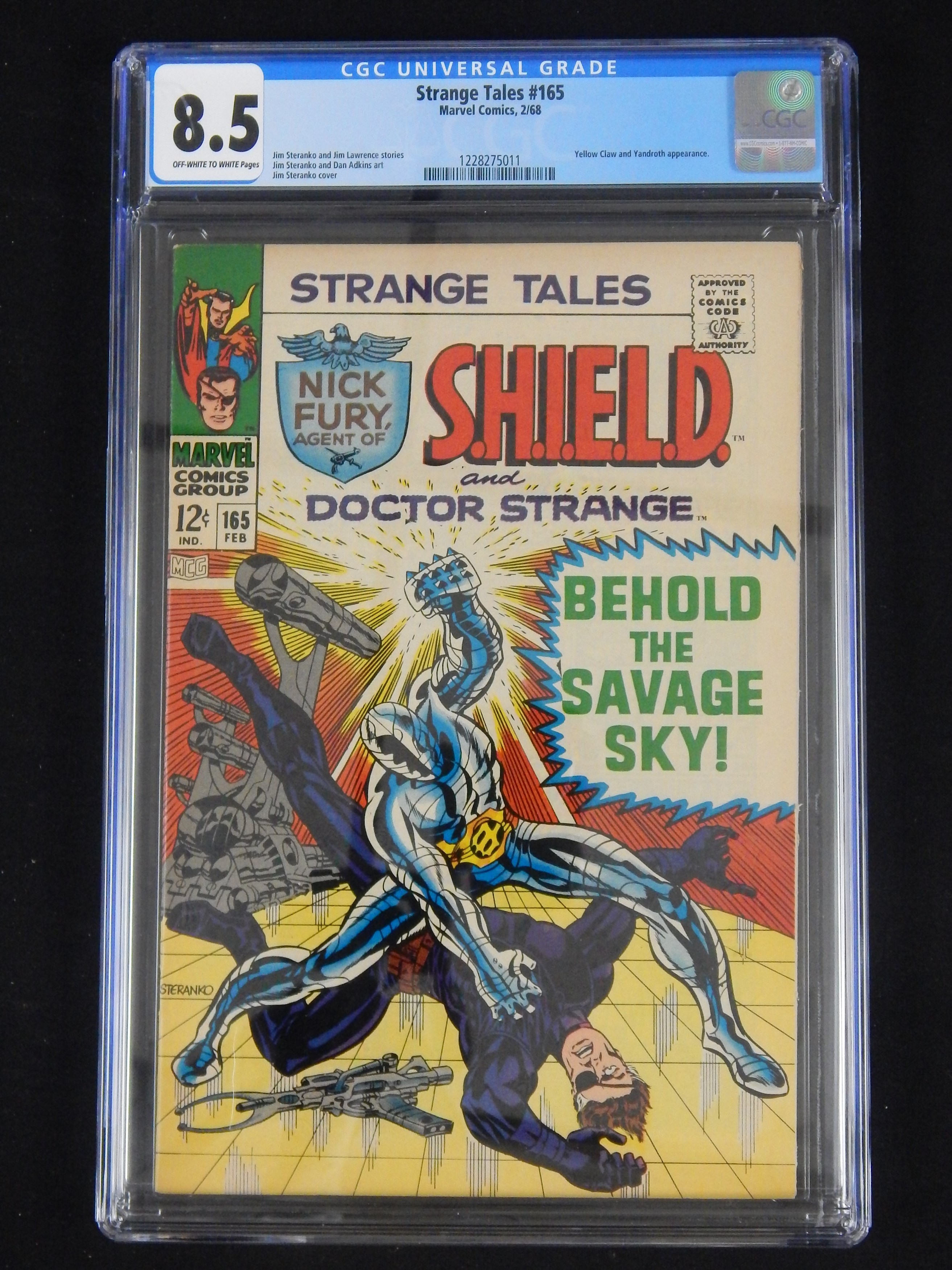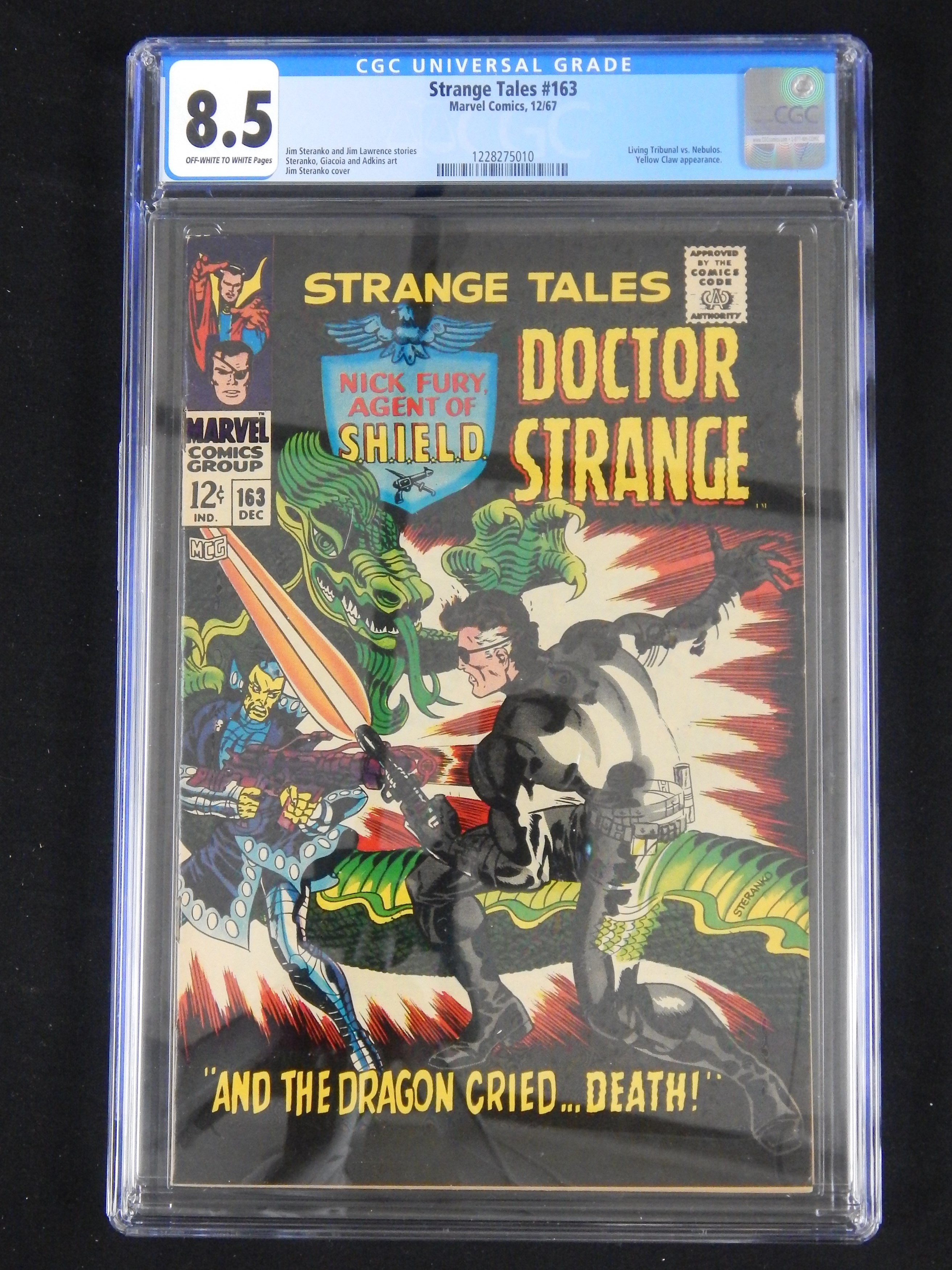 Superlative work by the great Jim Steranko: Strange Tales 156 CGC 8.0, Strange Tales 157 CGC 7.0, Strange Tales 160 CGC 8.5, Strange Tales 161 CGC 8.0, Strange Tales 163 CGC 8.5, Strange Tales 165 CGC 8.5.