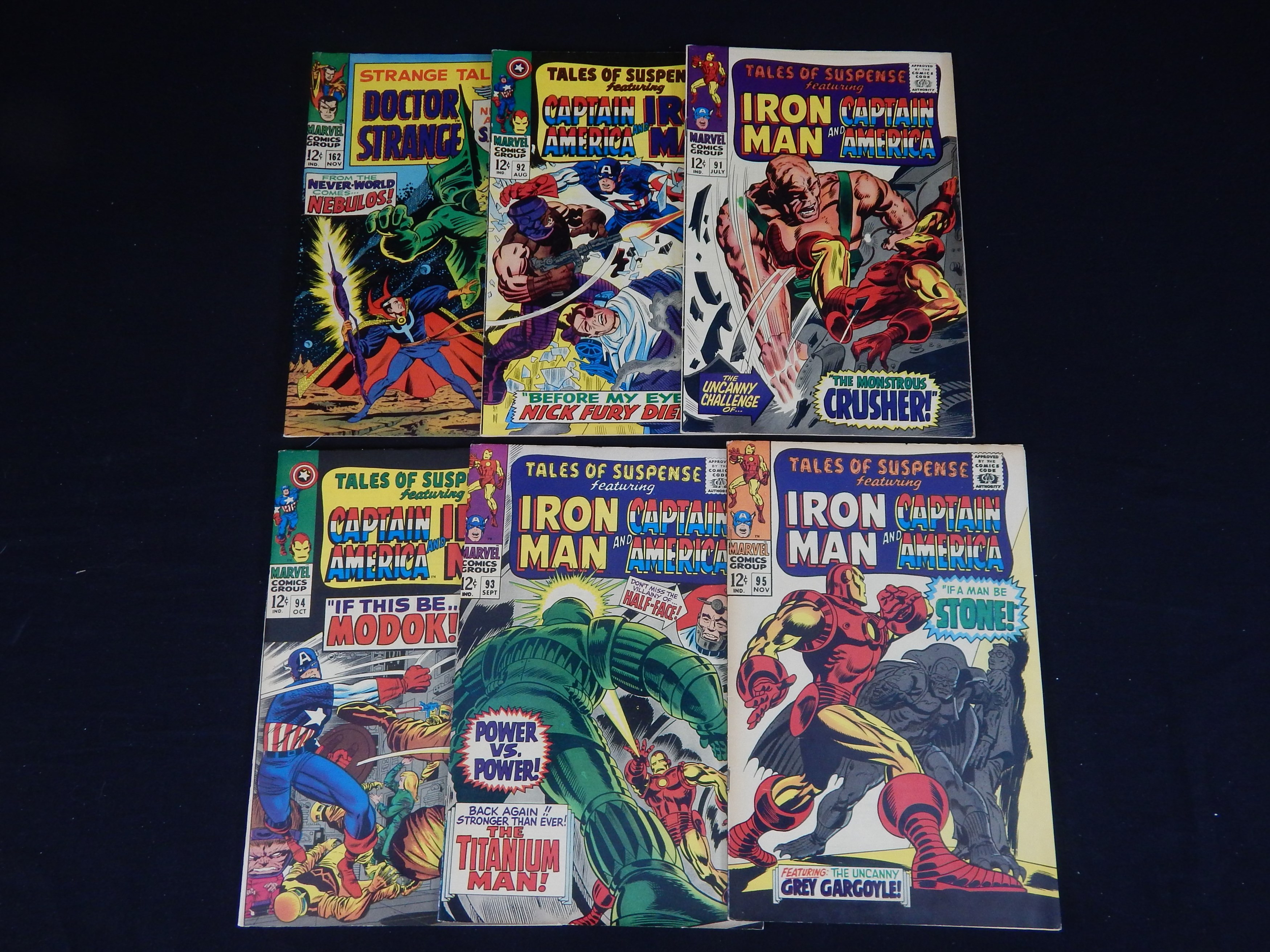 1) TALES OF SUSPENSE. Real nice lot grades Very Fine overall: 91, 92, 93, 94, 952. Mini run. 2) STRANGE TALES: 135-137 VG, 140 FN, 141 FN, 143 VG+, 149 VG-FN, 150 VG+, 152 FN, 162 VG-FN.
