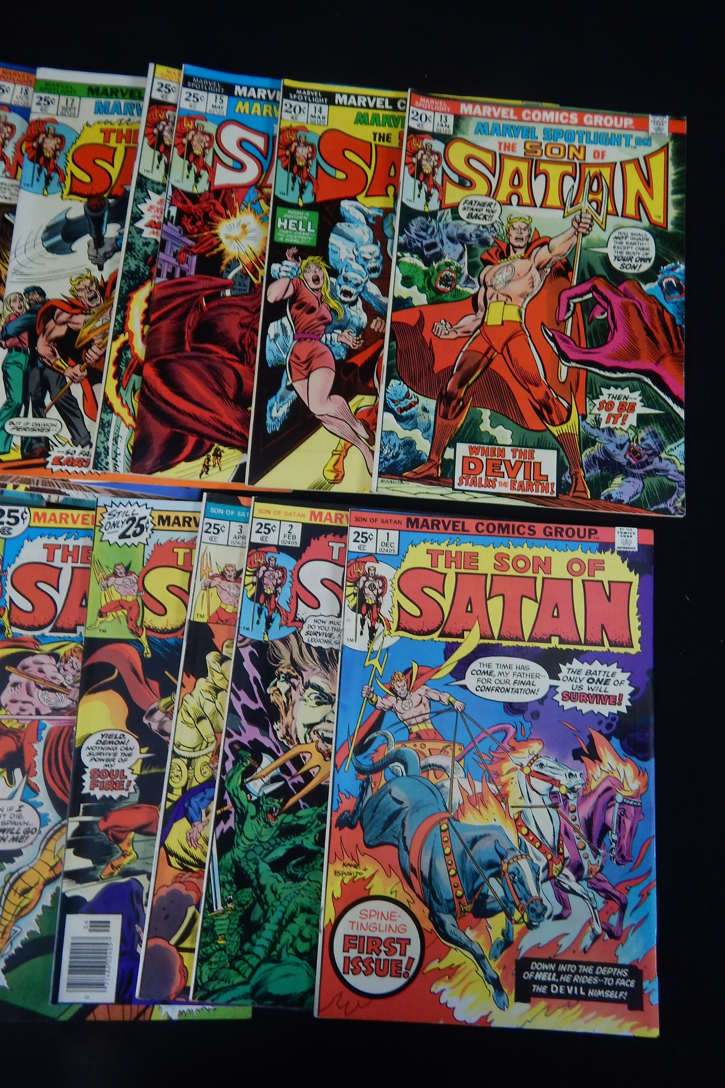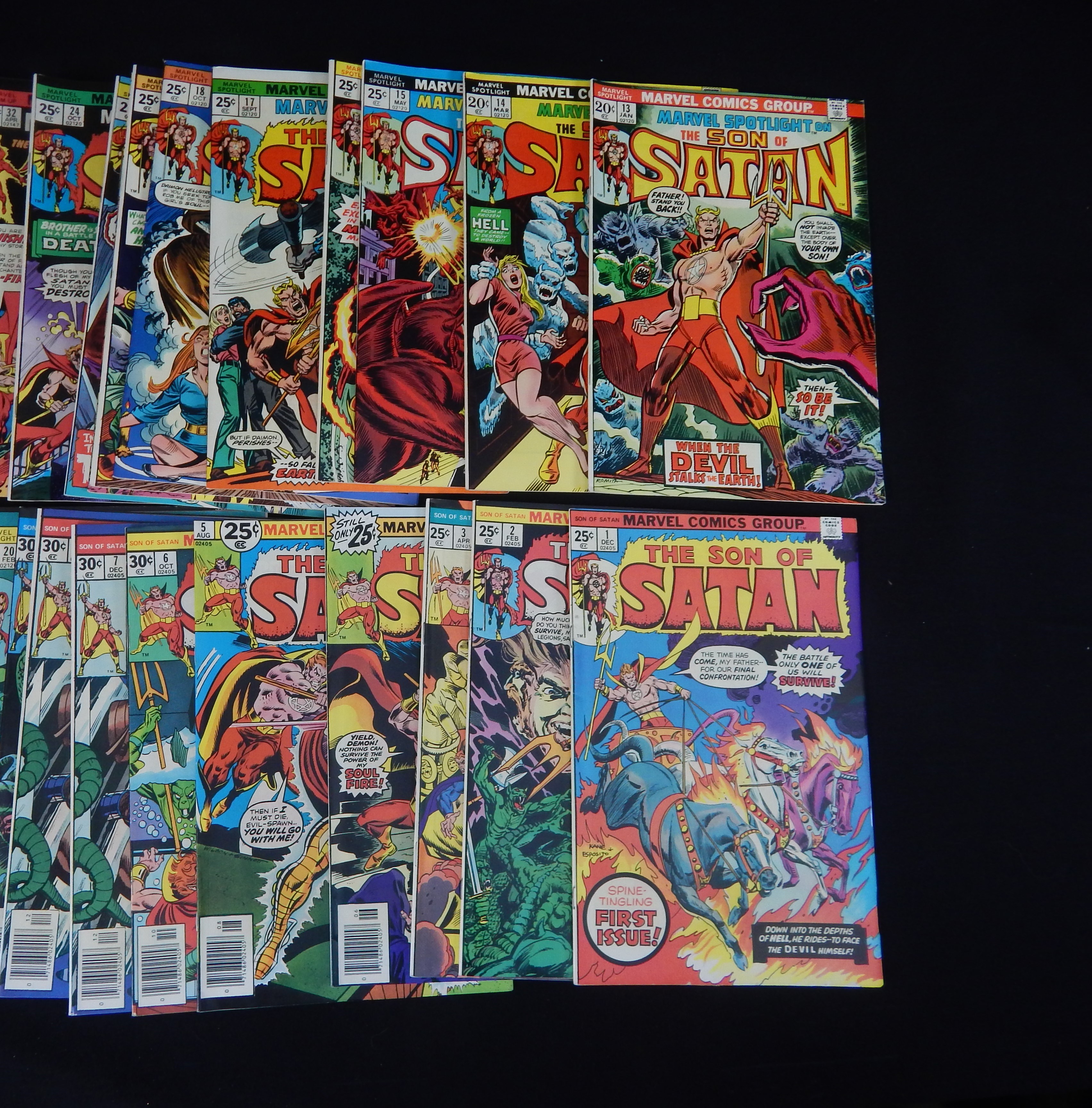 Overall NM with most 9.0 or better. MARVEL SPOTLIGHT: #12 (first appearance VF-NM), 13-20, 22-24. SON OF SATAN: #1-8 with extra #7. MARVEL TEAM-UP: #37.