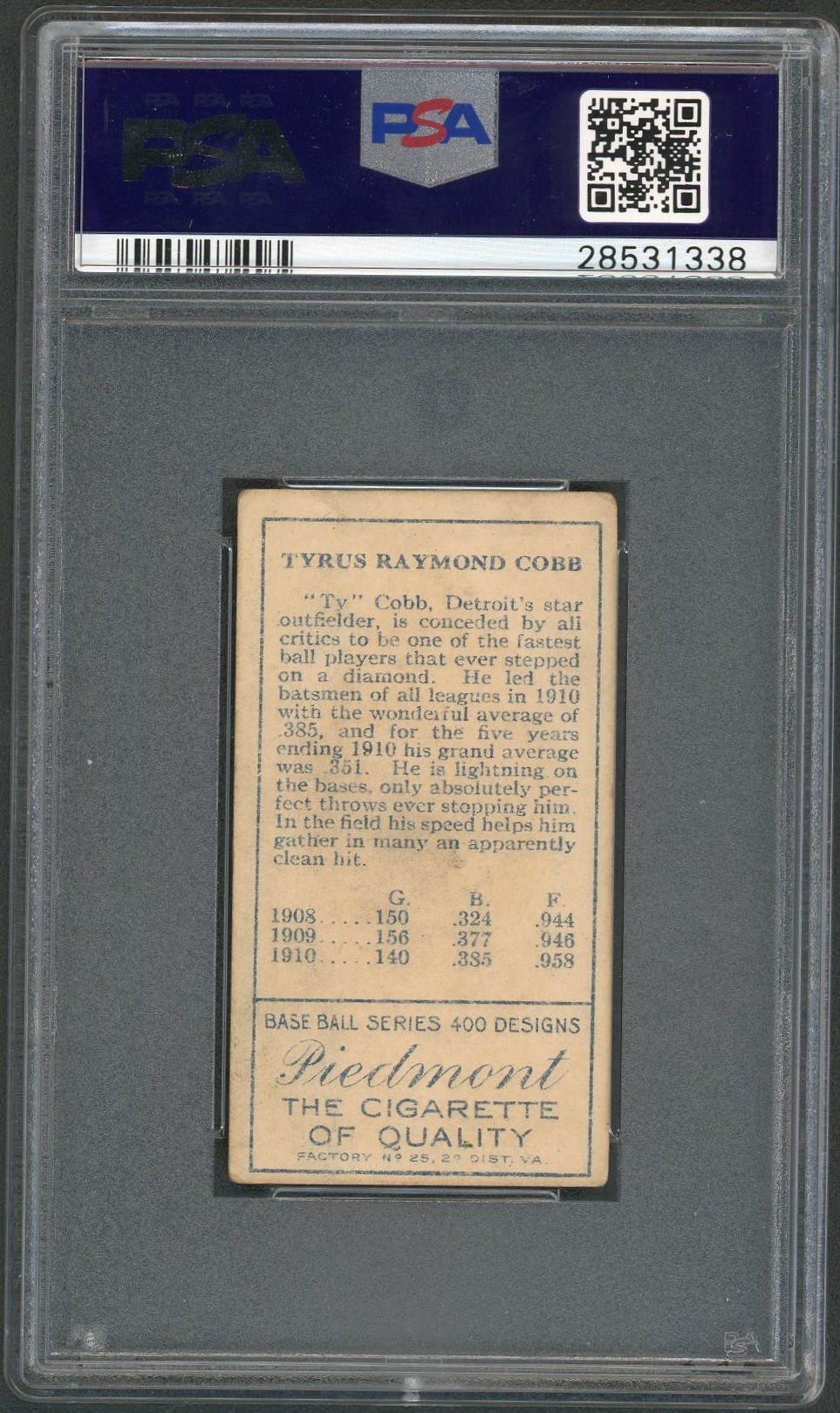 Graded by PSA VG+ 3.5. Recently graded example with a very crisp image of Cobb, surrounded by bold red and green colors. Clean surfaces front and back.