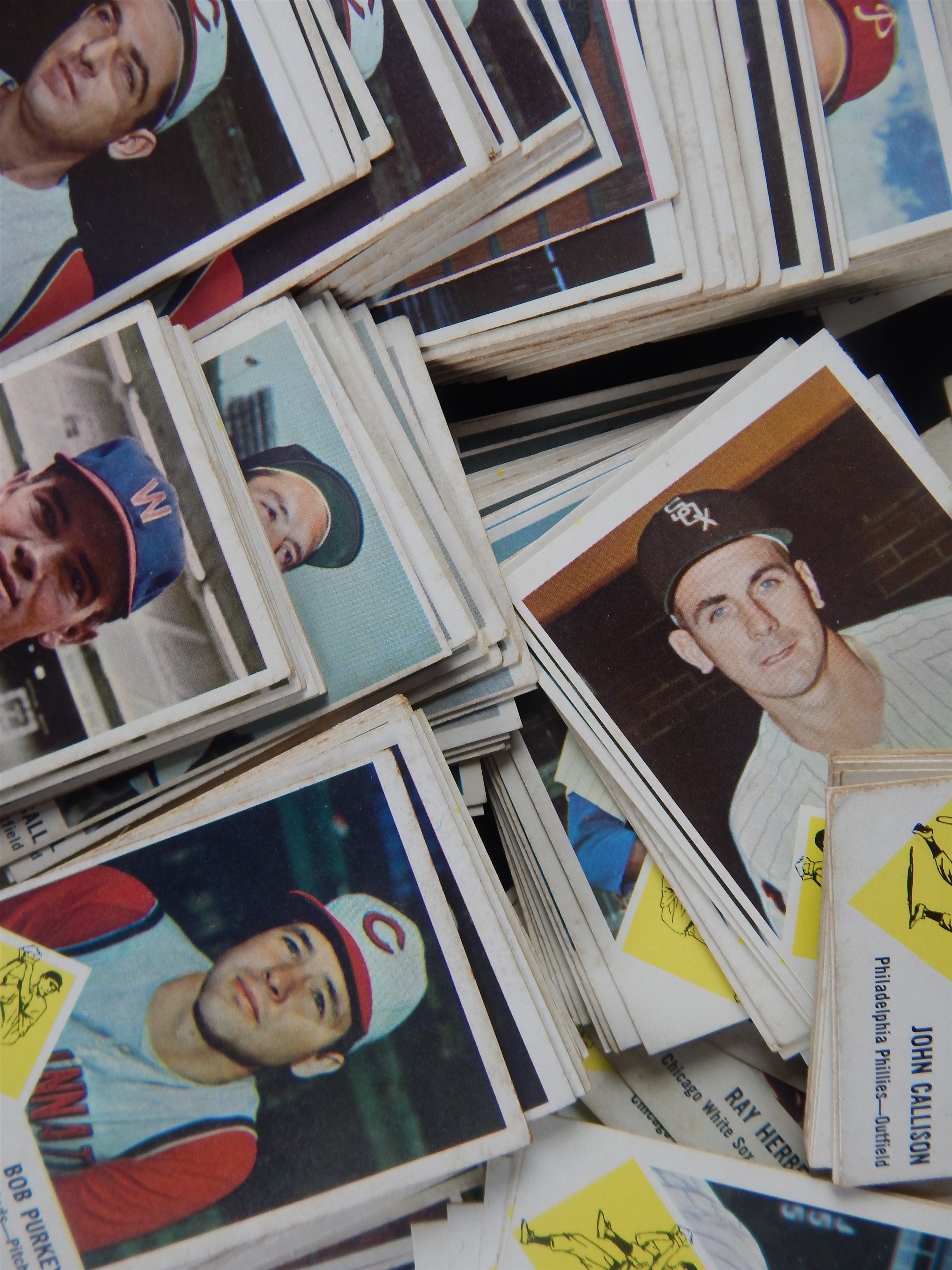 Large group of this popular issue, containing mostly commons but a handful of cards of the #1 and #66 cards, the first and last cards of the set. Almost all cards contains some type of foxing and/or discoloration. Grades mostly VG to VG/EX, with some lesser.