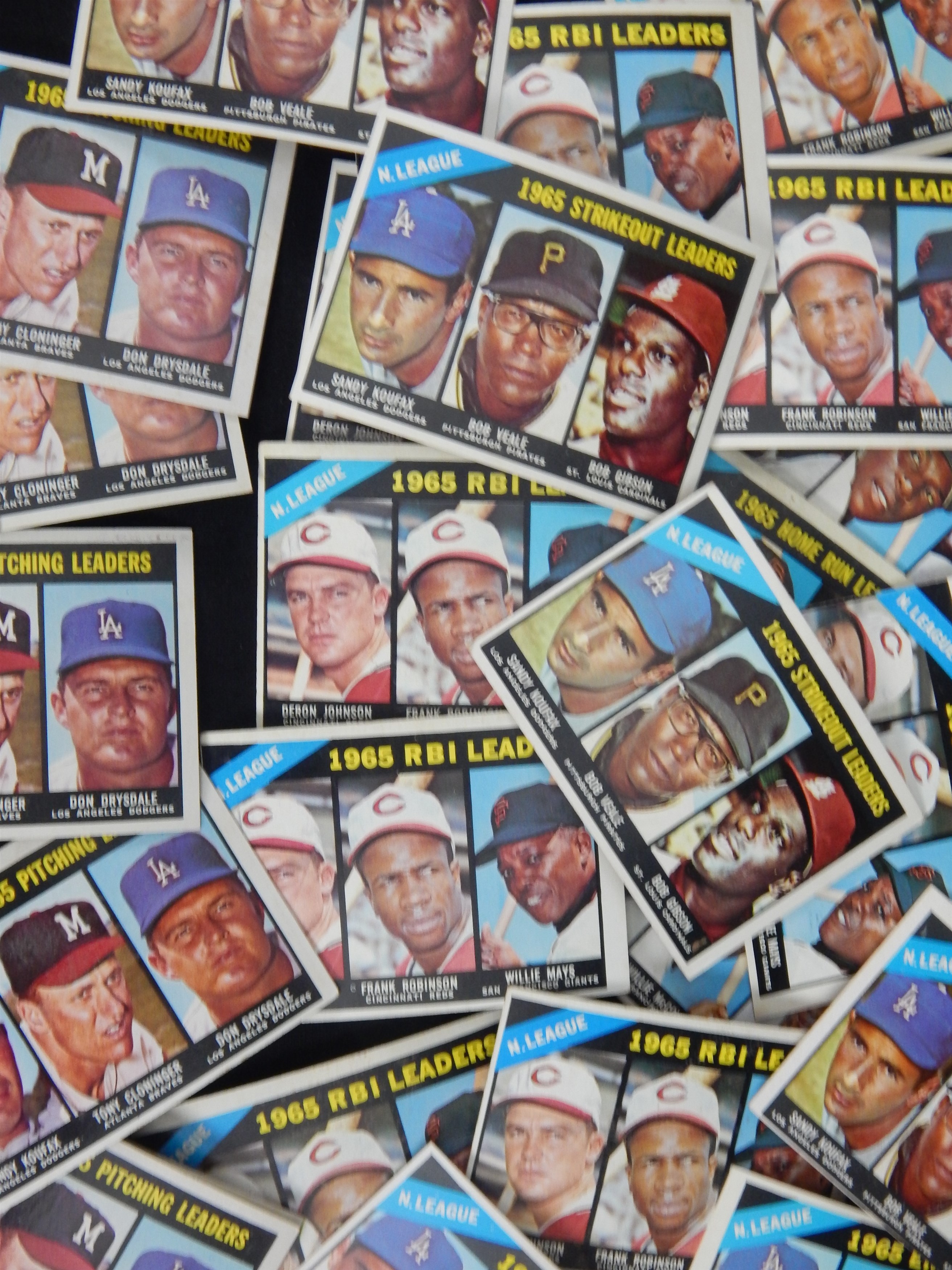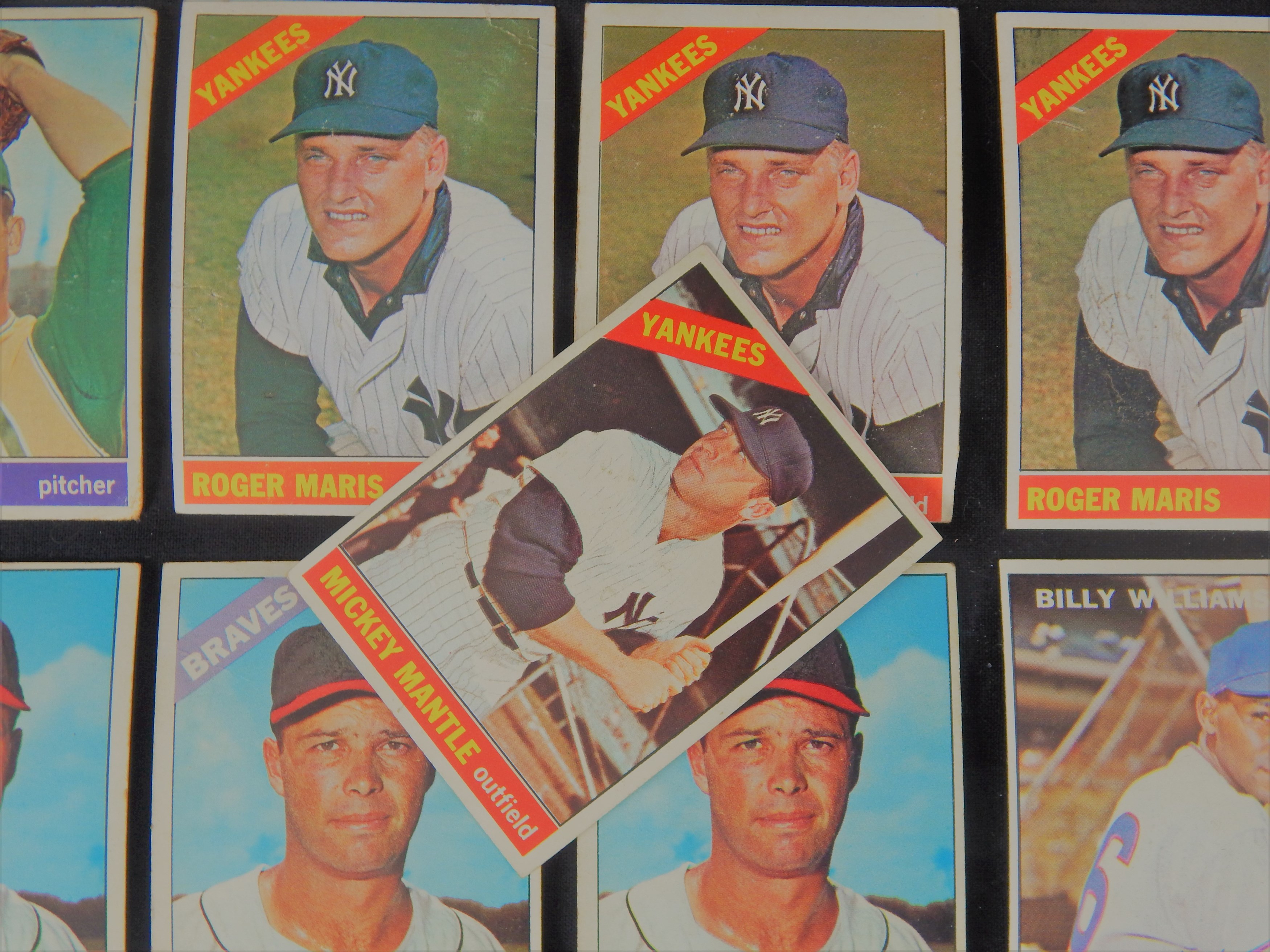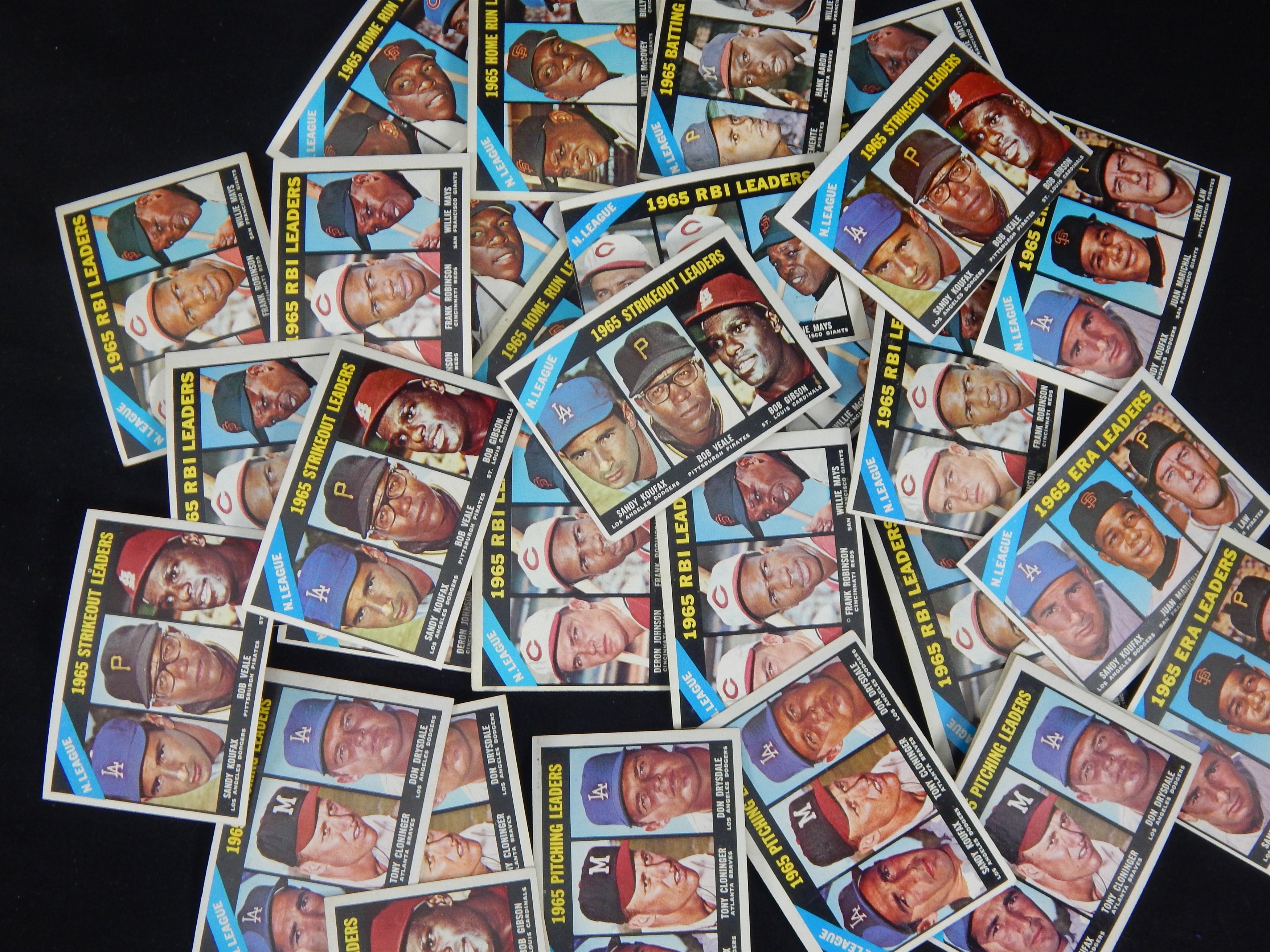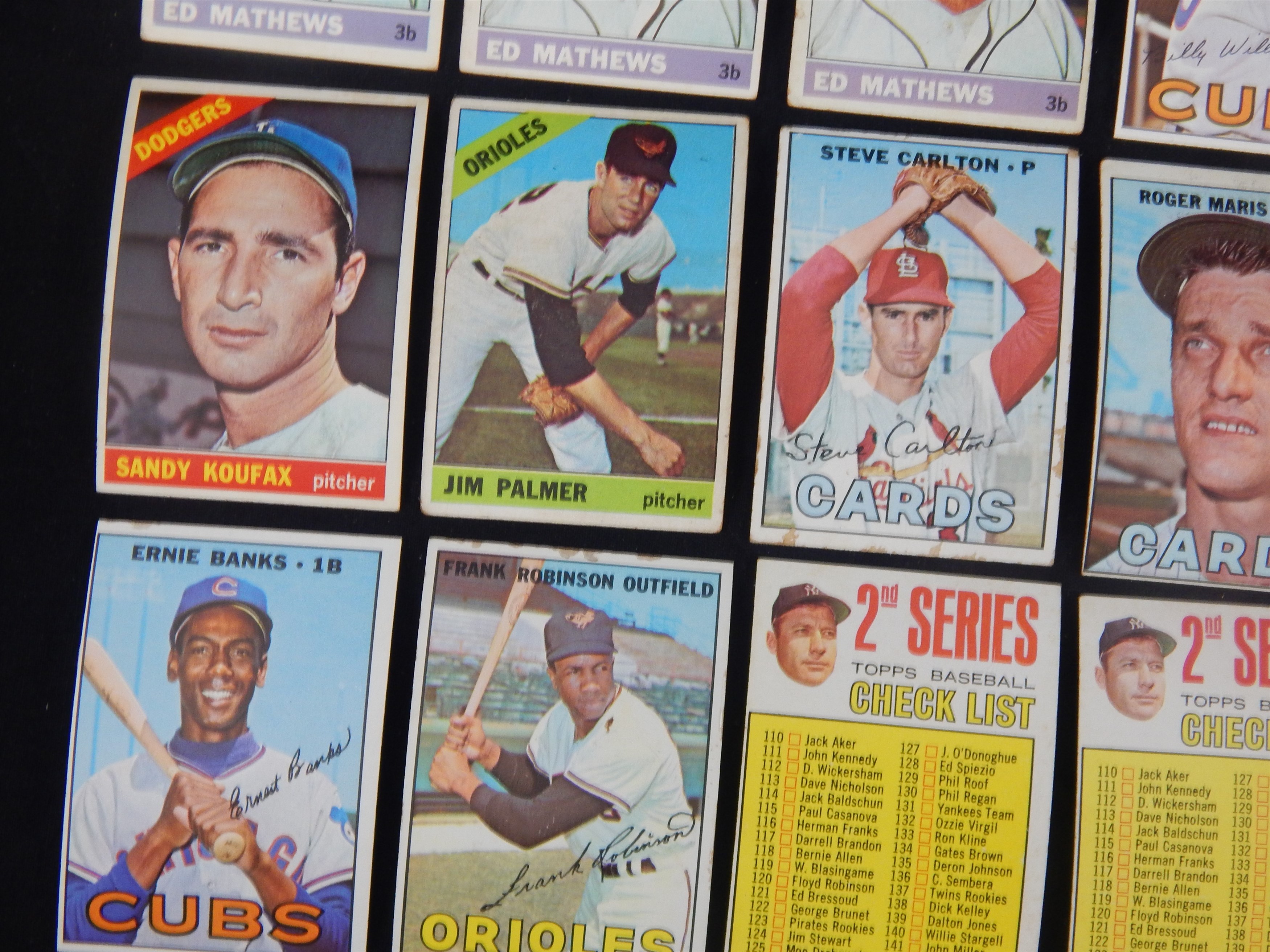 Includes: 1966 Topps - approximately 320 cards w/#1 Mays (FR), 36 Hunter (4), 50 Mantle (EX), 70 Yaz (2), 72 Perez (2), 100 Koufax (VG/EX), 125 Brock (2), 126 Palmer RC (GD), Ford (2), Mathews (3), Maris (3), LL (15).