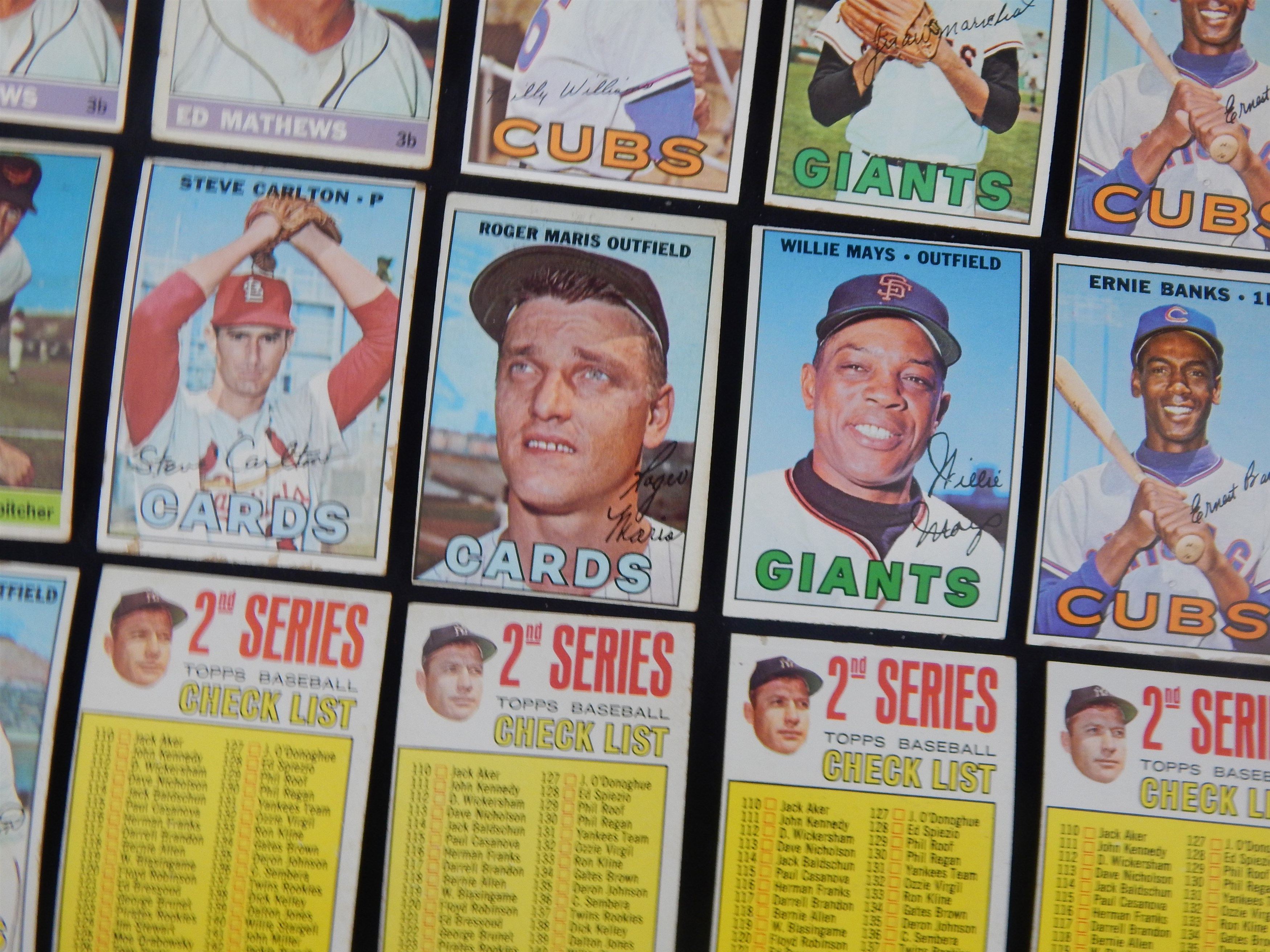1967 Topps - approximately 400 cards w/Ford, Kaline, Maris (5), F. Robinson, 103 Mantle CL (6), 146 Carlton, 200 Mays (EX), 215 Banks (3), 315 Williams, 355 Yaz, 430 Rose and 500 Marichal plus teams etc.