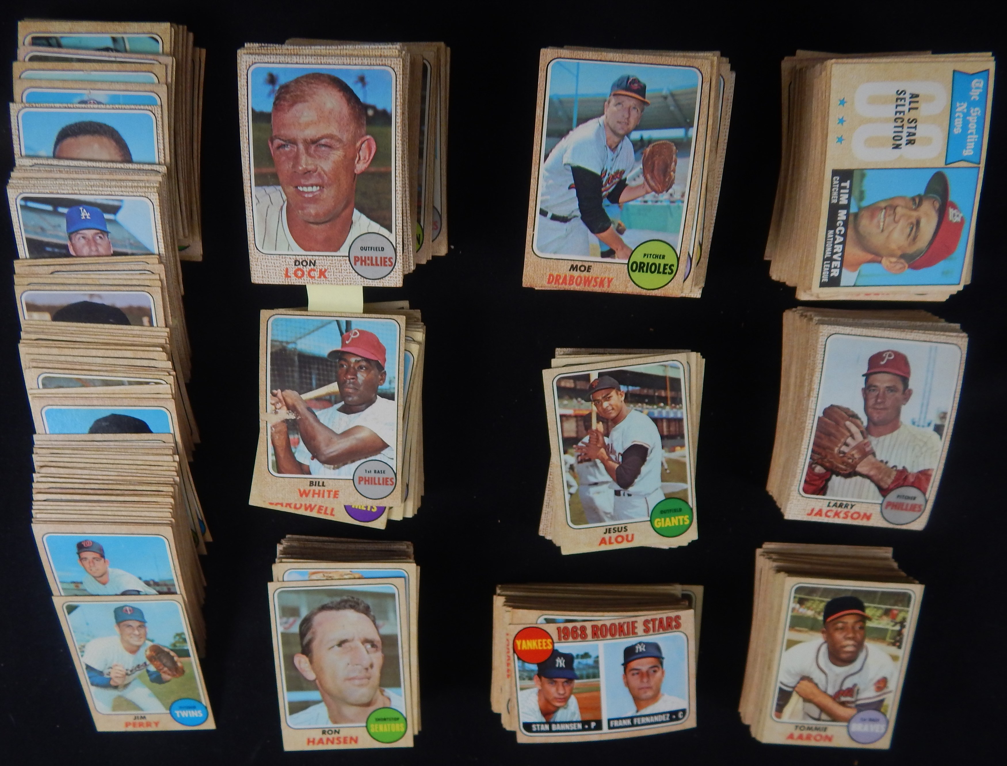 Collection of 1968 Topps baseball cards, comprising two partial sets of about 300 each with some extras. No stars. Grades VG to EX/MT, with some better.