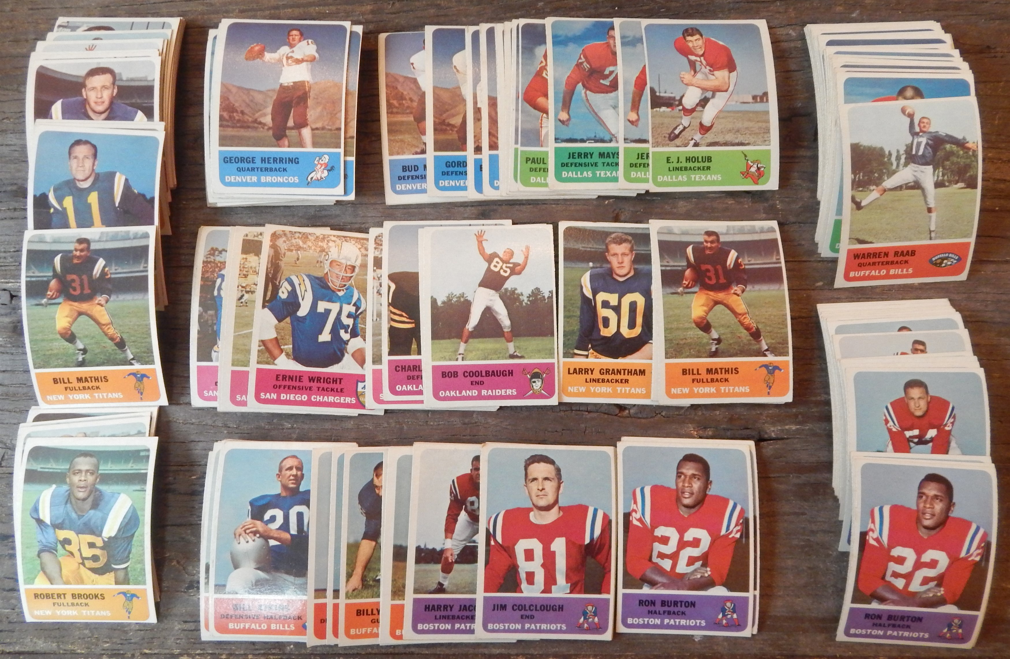 Collection of approximately 400 cards from the 1962 Fleer football issue. Cards from this set are much more scarce than previously known. Makes FOUR near sets, minus all major stars, and many extras. Grades mostly EX or better with some lesser.