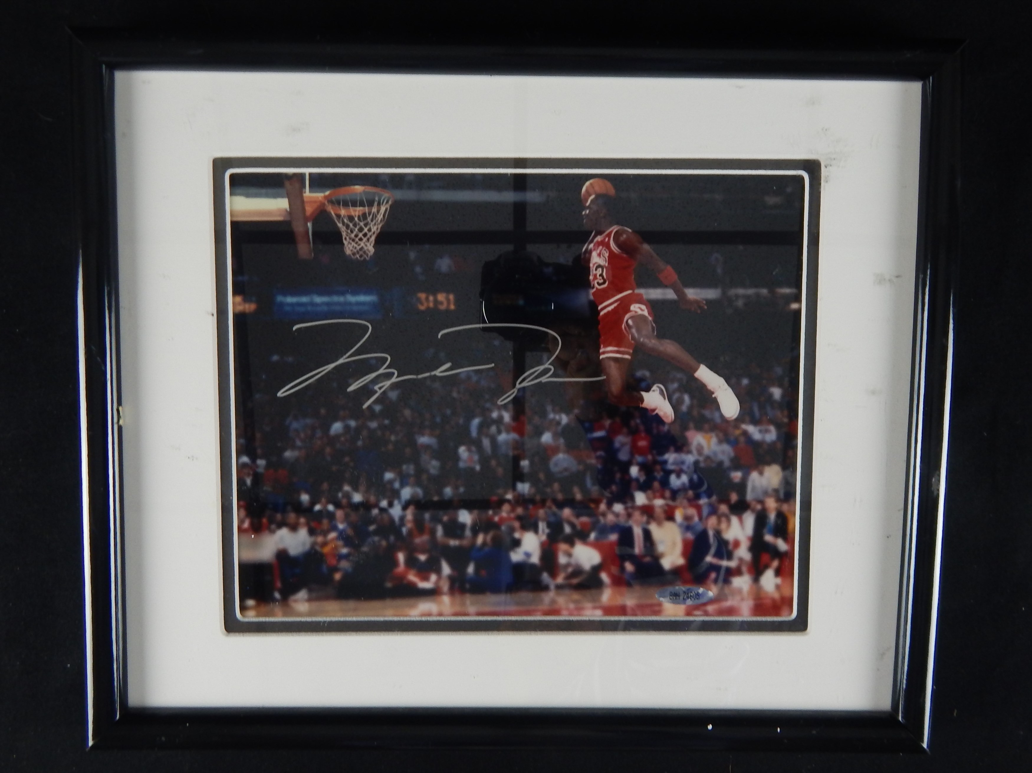 Michael Jordan in the Classic Gatorade pose in this gorgeous Type I photo. In original Upper Deck packaging with certs. NM.