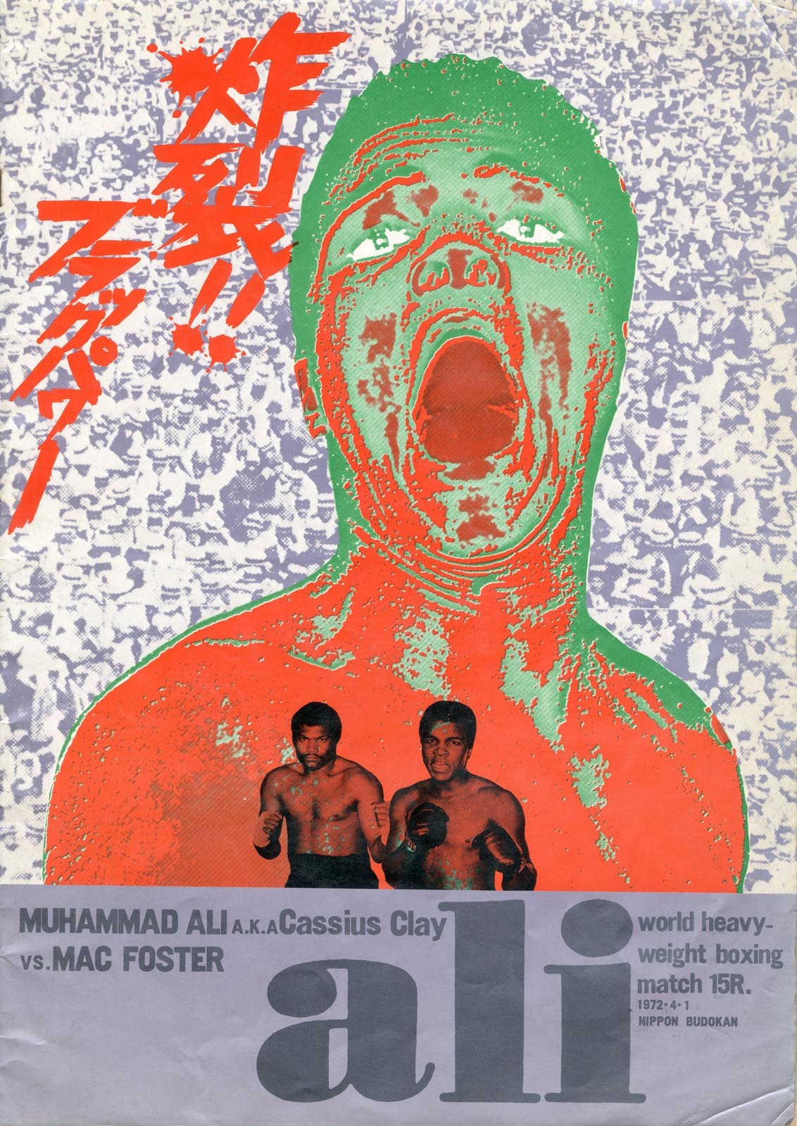 On April 1, 1972, at Nihon Budokan in Tokyo, Japan, former World Heavyweight Champion Muhammad Ali continued his comeback from his loss to Joe Frazier a year earlier, meeting tough Mac Foster in the main event. Ali prevailed, winning a unanimous 15-round decision. Offered here is the exceptionally rare, original, on-site, official program for the event. This 24-page program pictures Ali on the cover. Oversized to 11.75x 15.75", this program exhibits minor creasing to corners of cover. Tight binding and not scored. Includes a small promotional photo card of Mac Foster. Tough to find in any condition.