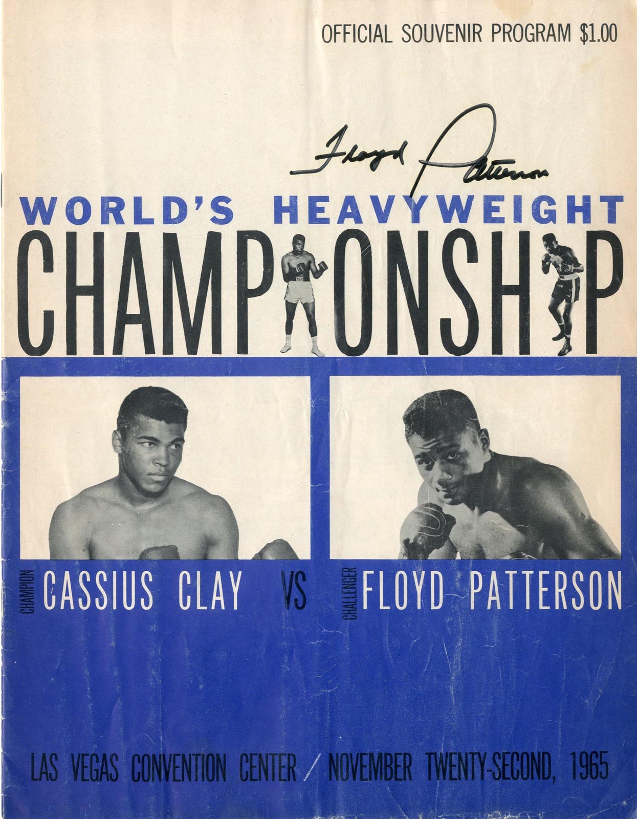 From the first bout between "The Greatest" and Floyd Patterson comes this unscored 1965 Clay v. Patterson I on-site program. The program has been signed by Floyd Patterson on cover and is VG-EX with minor surface creasing.