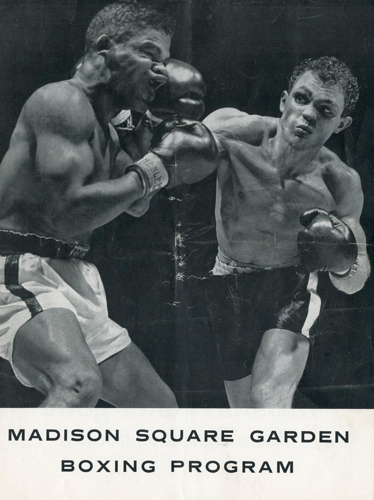 On March 13th, 1963, a capacity crowd of nearly 19,000 filled Madison Square Garden to observe Cassius Clay win by unanimous decision over Doug Jones. The scorecard is separated & un-scored. Program has a fold down half of the cover with minor surface wear, otherwise VG-EX.