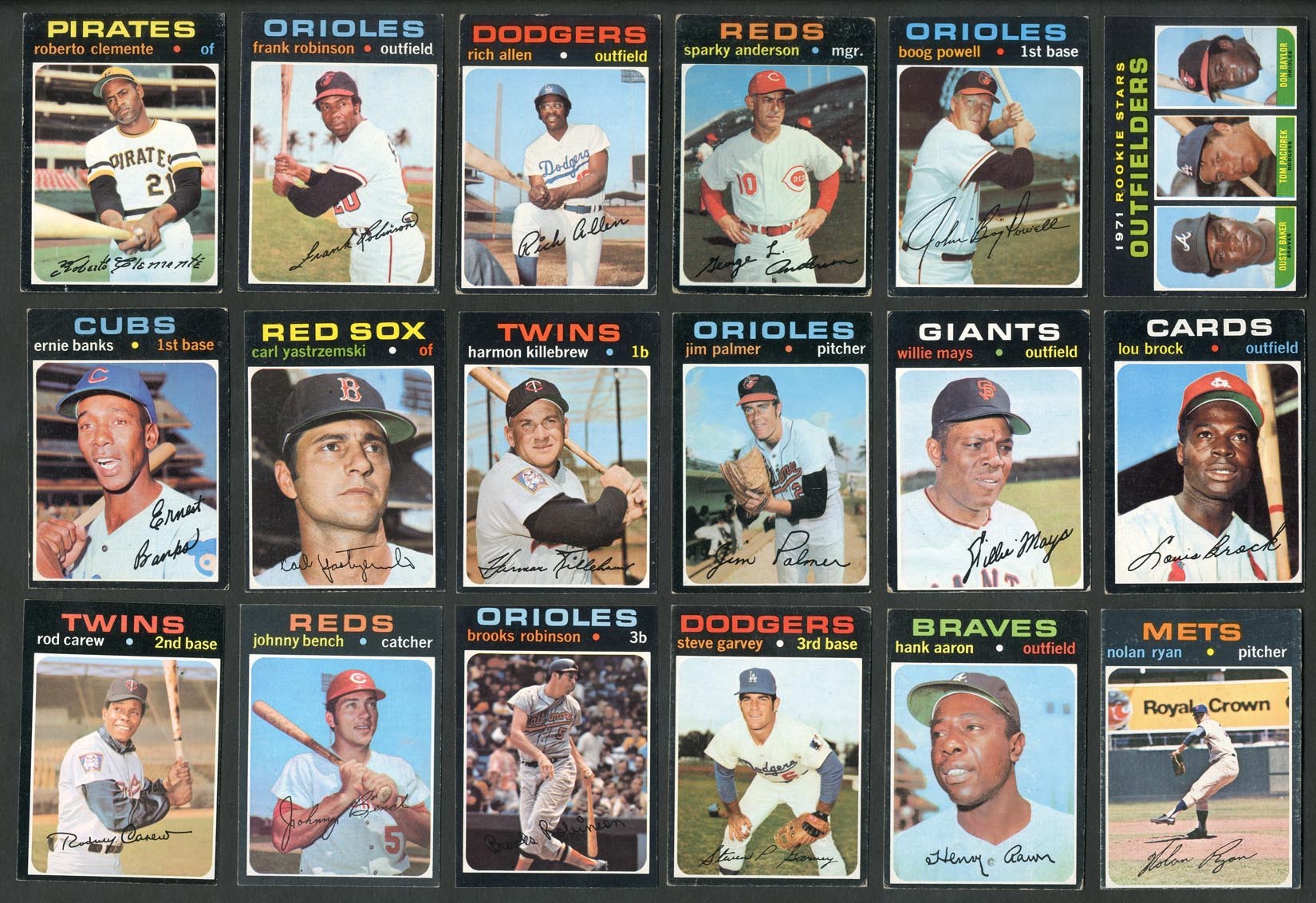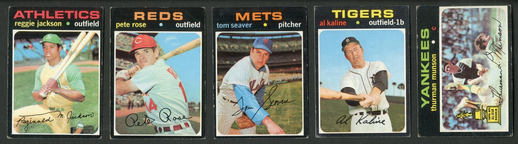 Includes: #5 Munson (VG), 20 Jackson (VG/EX), 100 Rose (VG), 160 Seaver (VG/EX), 180 Kaline (EX), 210 Carew (EX), 250 Bench (GD/VG), 300 B. Robinson (EX), 341 Garvey RC (VG/EX), 400 Aaron (VG/EX), 513 Ryan (VG/EX), 525 Banks (VG/EX), 530 Yastrzemski (EX), 550 Killebrew (EX/MT), 570 Palmer (EX), 600 Mays (VG), 625 Brock (EX), 630 Clemente (VG/EX), 640 F. Robinson (EX), 650 Allen SP (VG/EX), 688 Anderson SP (VG), 700 Powell SP (EX) and 709 Baylor/Baker RC (EX/MT). Grades mostly VG to EX, with about 10% better and 15% LESSER.