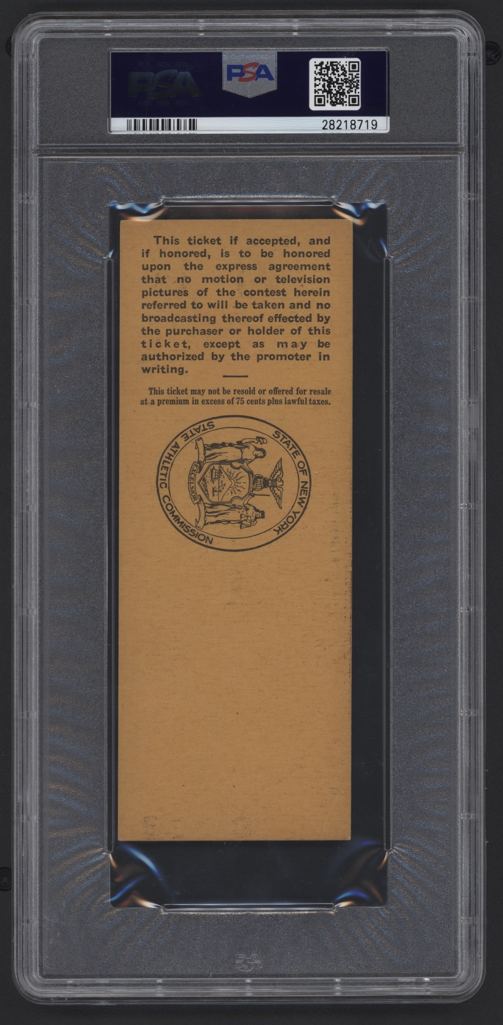 Full ticket from 1940 fight between Ken Overlin vs. Steve Belloise taken place at Madison Square Garden. Overlin won in 15 rounds.