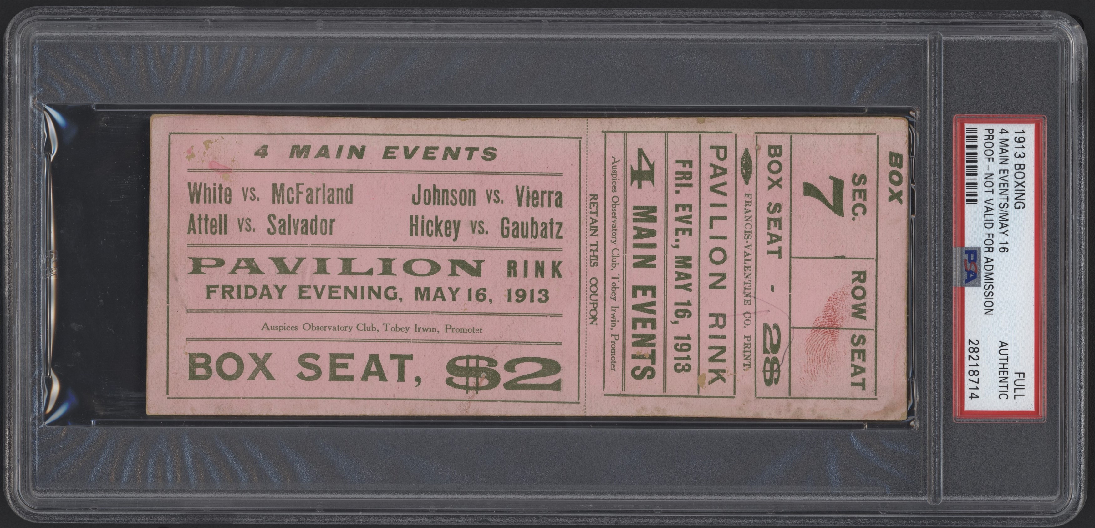 4 Main Event boxing ticket from 1913. Full ticket. PSA grade A