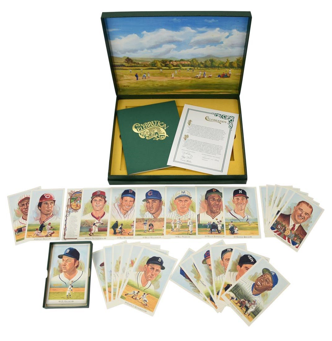 1) Fabulous collection of high grade Perez-Steele cards are overall NM-MT. Many are in original boxes, and from several different P-S sets including Hall of Fame, Great Moments, Masterworks & Celebration. As far as Hall of Fame many are from the earliest series'. Many of the more "modern" players were pulled from the sets to be signed so this has many of the finest players such as Babe Ruth, Lou Gehrig, Ty Cobb, and the like. There are some sets here but mostly singles. The breakdown is about 50% Hall of Fame and about 50% the rest of the sets. Incredible collection of over 4,100 items! 2) There are also a total of 23 Celebration sets complete in the original boxes and shipping carton. 21 of the 23 boxes are sealed.
