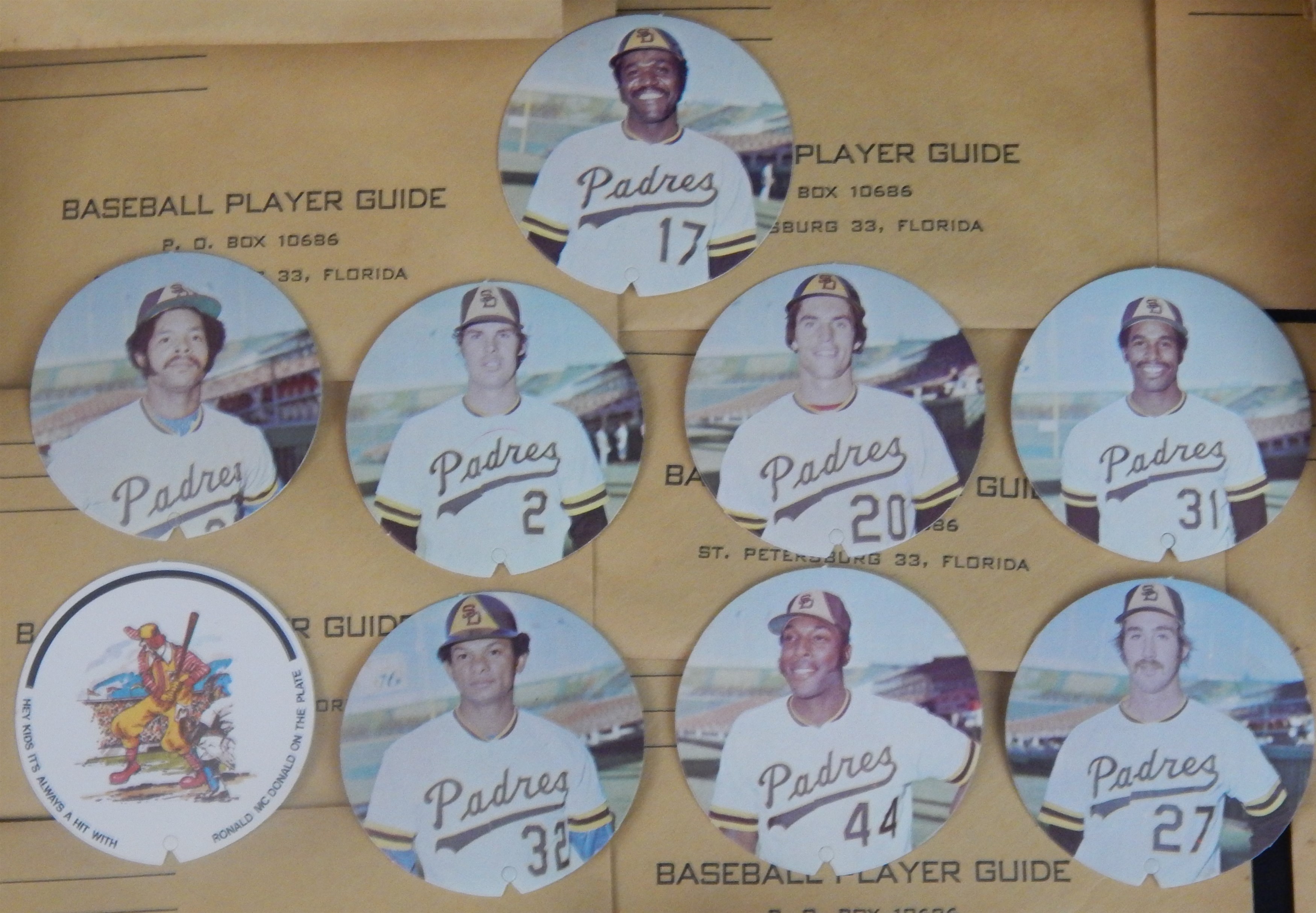 Regional issue includes 9/15 in the set including Dave Winfield, Willie McCovey, Tolan, Roberts, Crull, Grief, Colbert, Alou & Ronald McDonald. Overall EX.