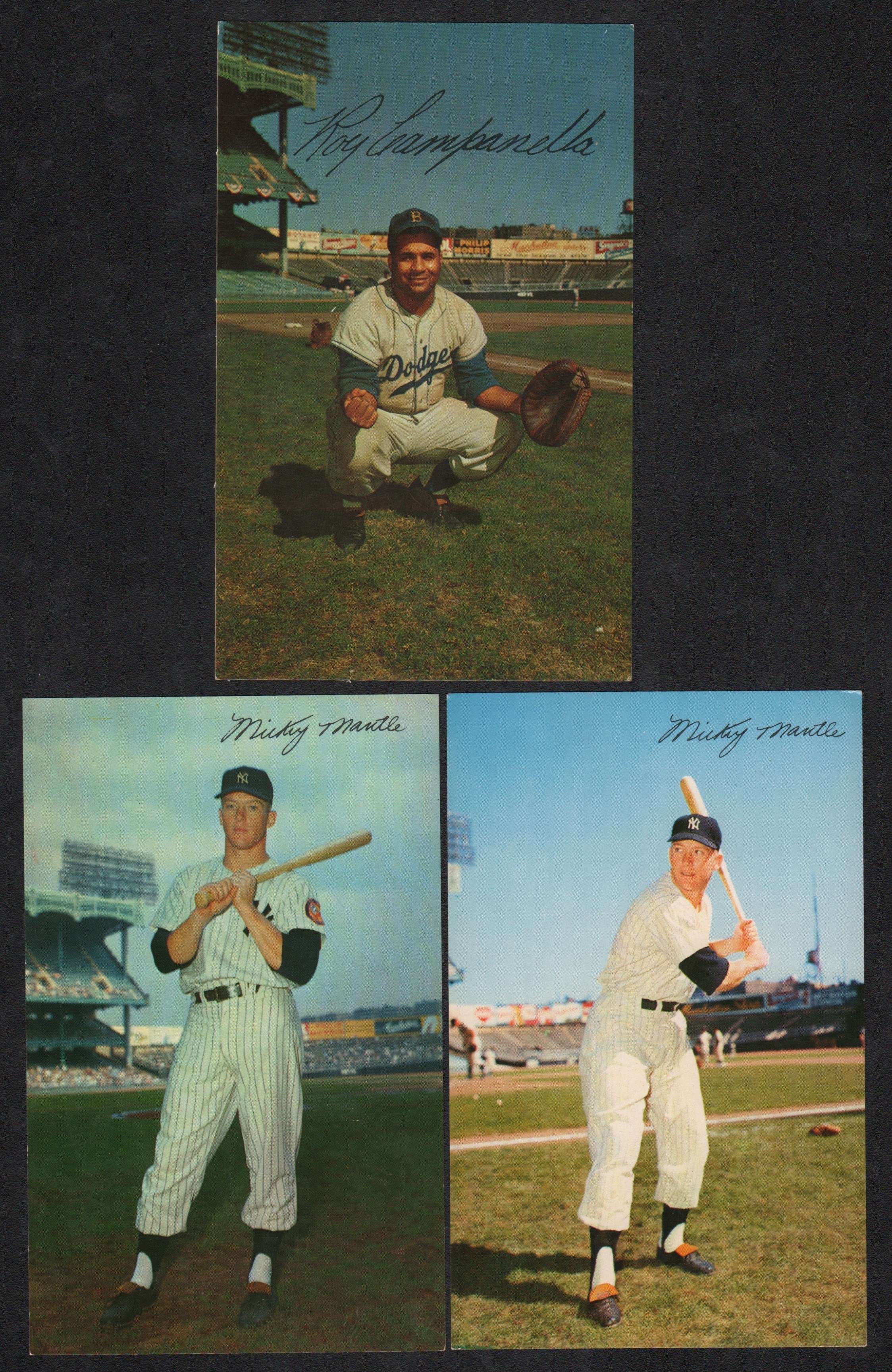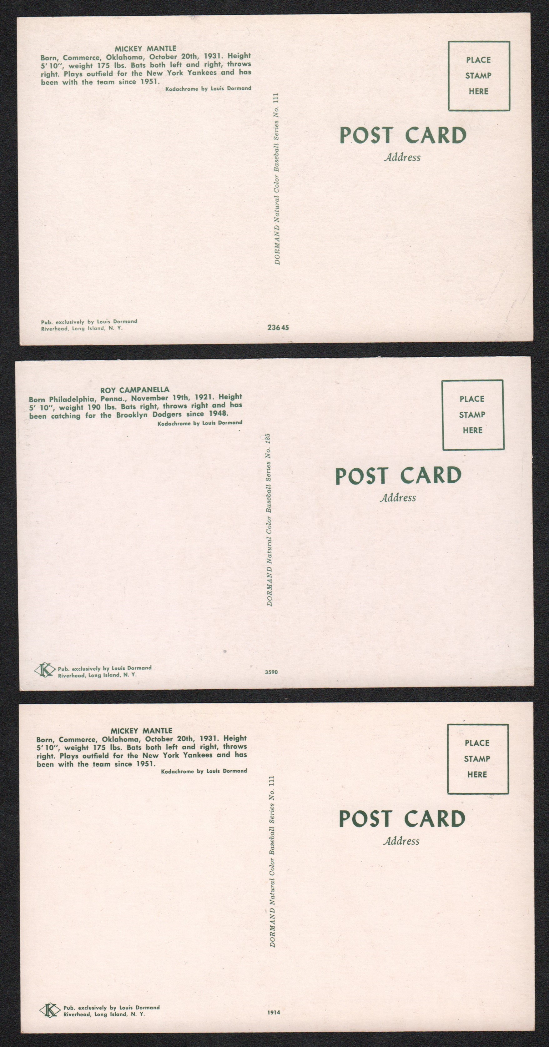 Includes: Rizzuto (VG/EX), Berra (EX), Collins (no patch), Mantle - bat on shoulder (EX/MT), Mantle - batting (VG/EX, crease), Mize (blank back) and Campanella (EX).
