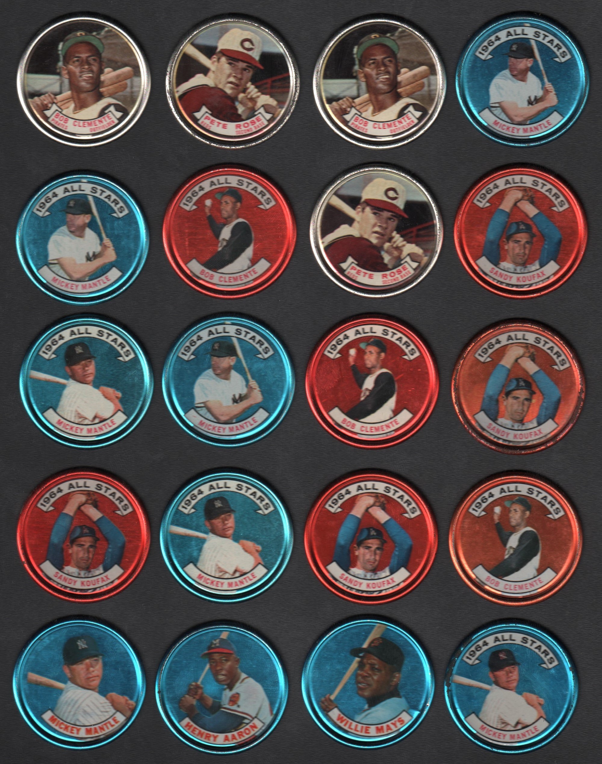 1965 Old London - 29 coins w/Aaron, Banks, Cepeda, Kaline, Mantle, Maris, Mays, Maz, B. Robinson, F. Robinson, B. Williams and Yaz. Mostly VG/EX or better.