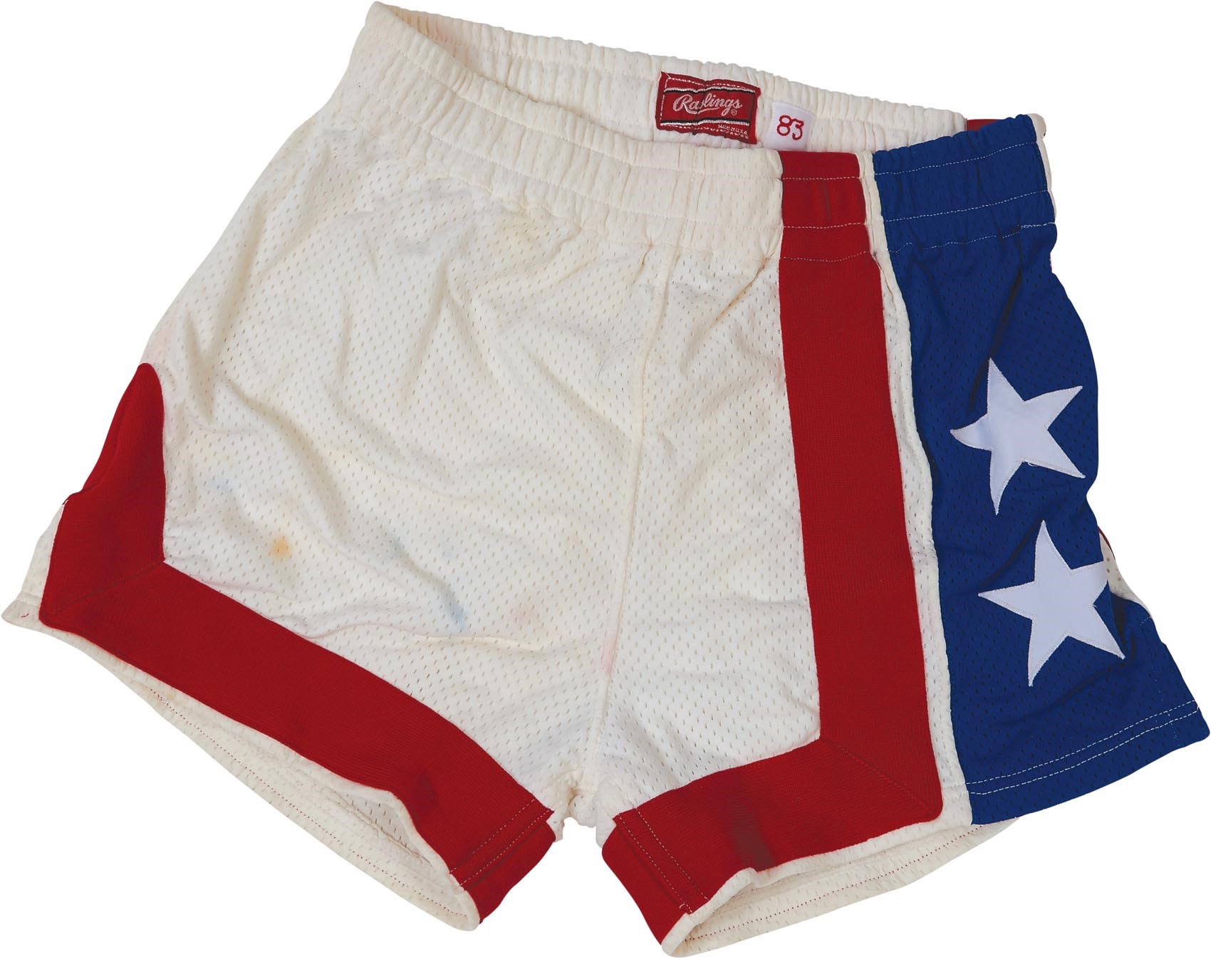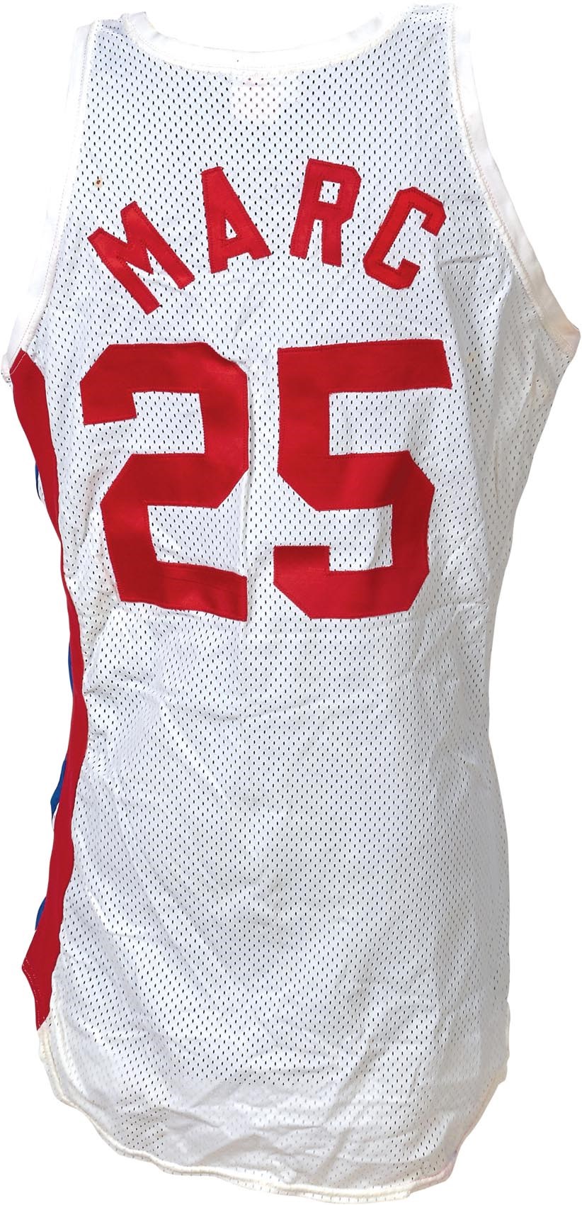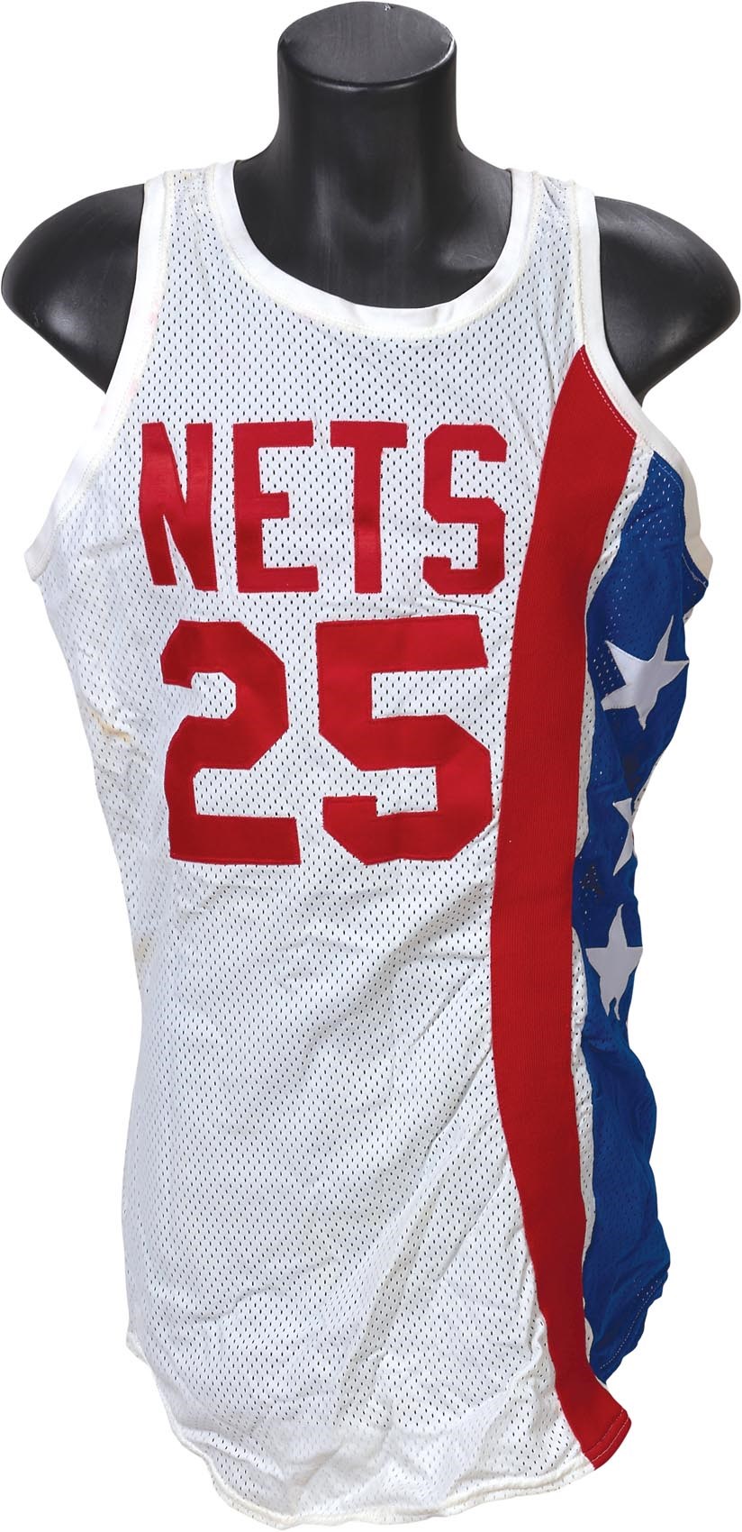 Custom made 1983 Nets jersey and shorts custom made for Joe's son Marc. Back has nameplate "Marc" with number 25 and this means it's possible this was a 25th Birthday gift. Correct Rawlings tagging in each with year tag "83". Comes from the collection of Joe Taub.