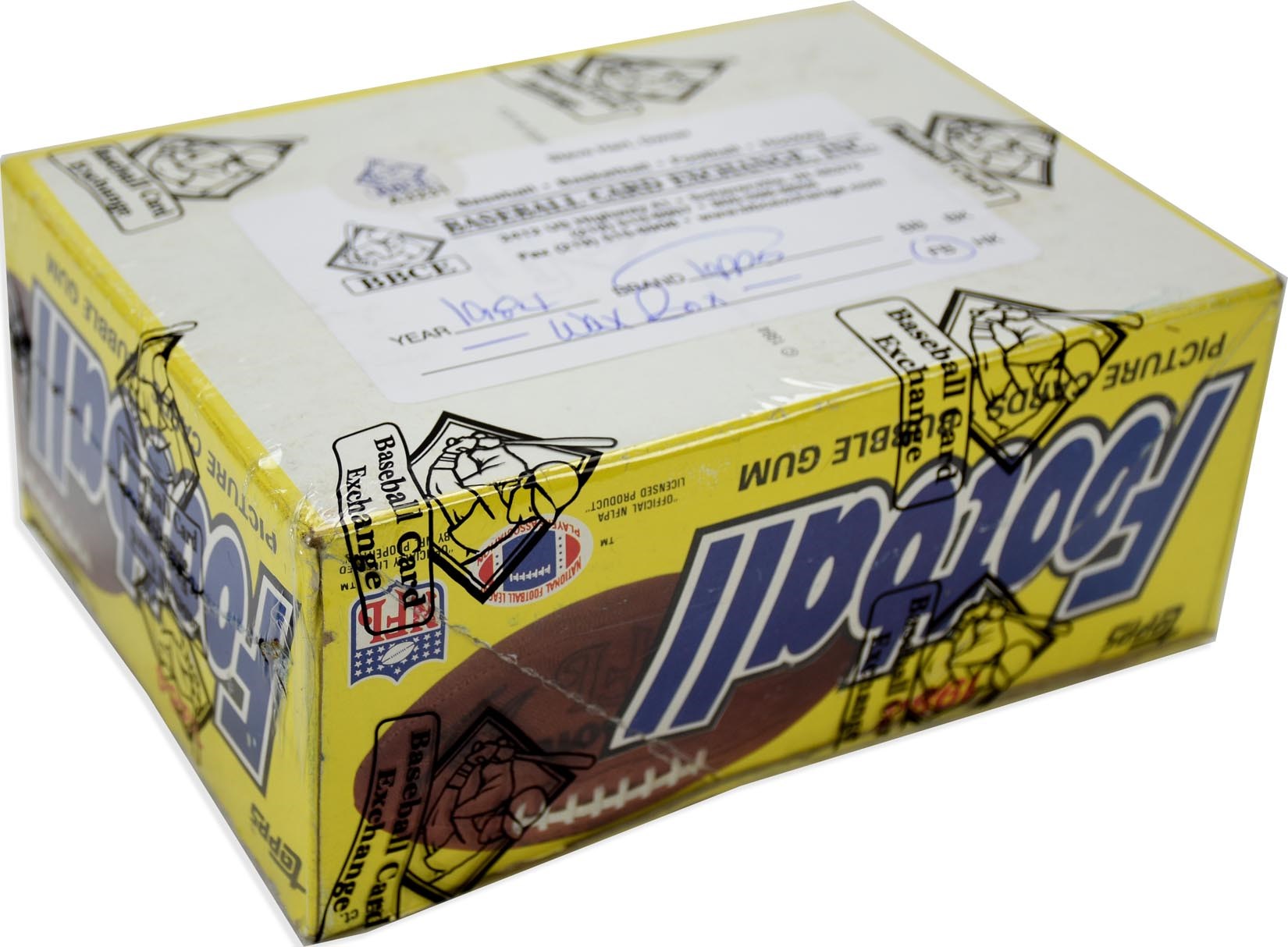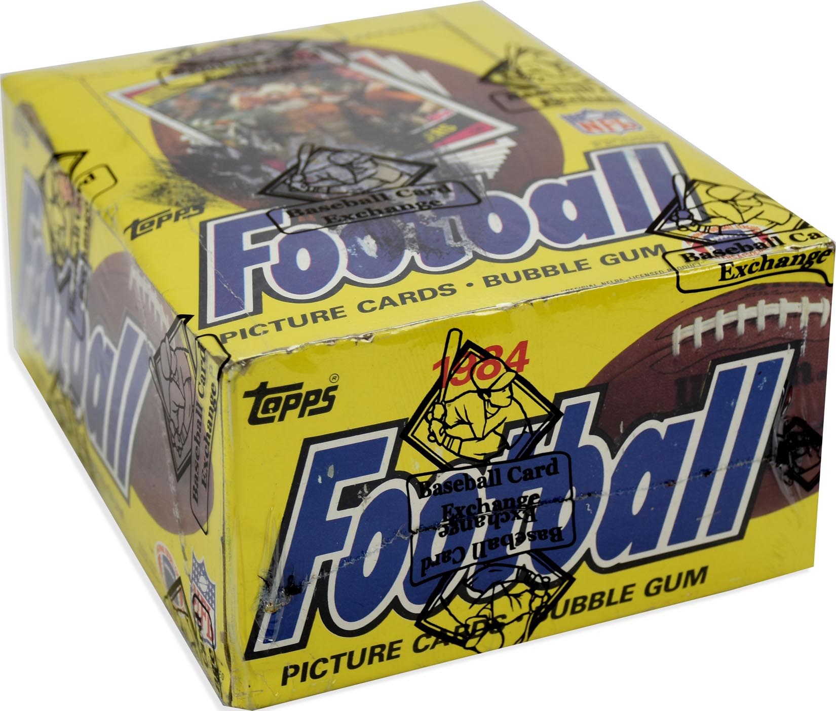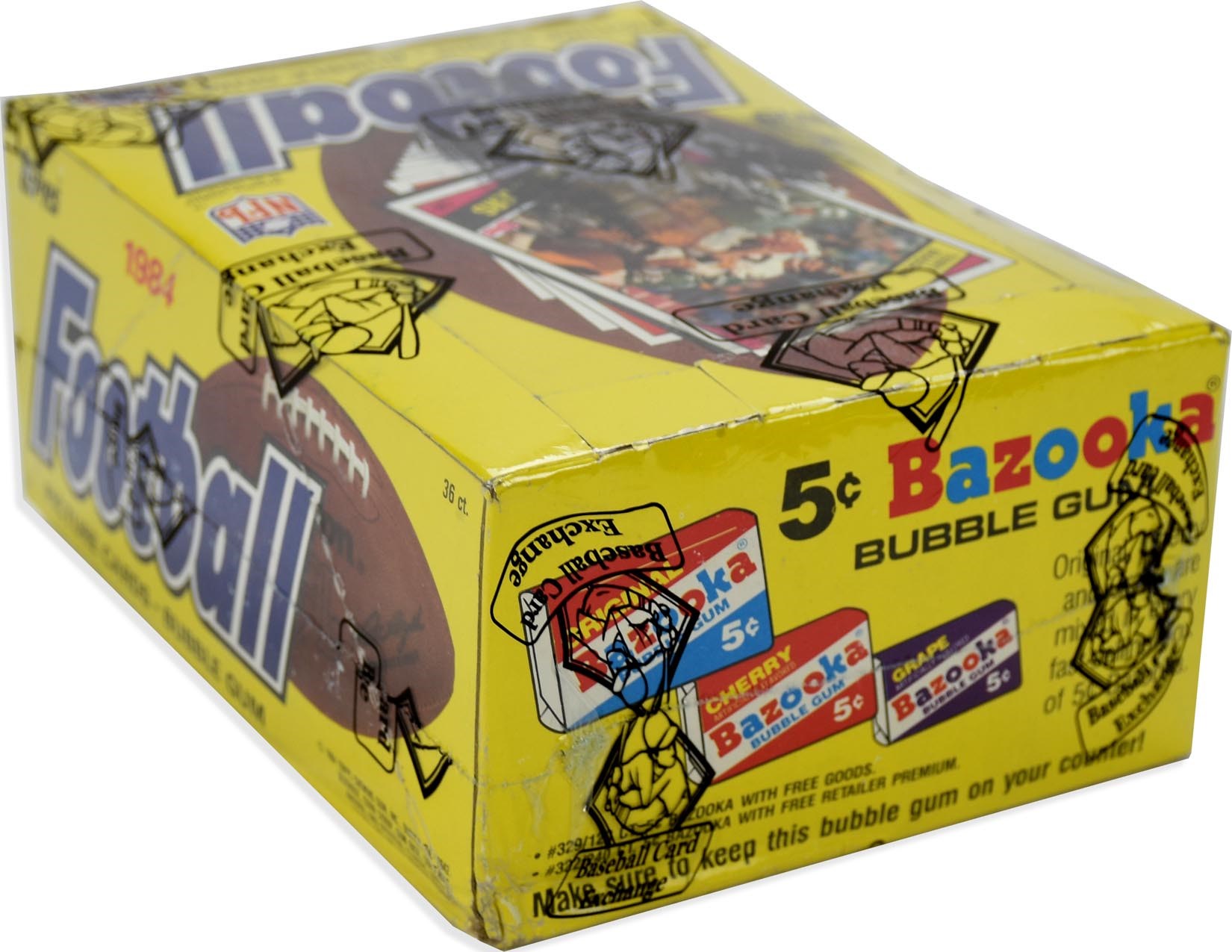 A full 1984 Topps Football wax box, containing 36 packs with 15 cards per pack - holding the rookie cards of Hall of Famers John Elway, Dan Marino and Eric Dickerson. Fully authenticated and wrapped by BBCE.